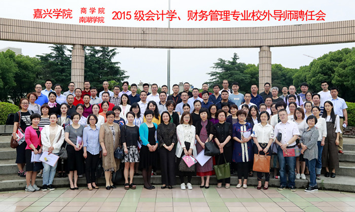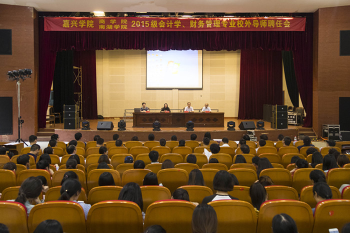 531日下午,437ccm必赢国际官方网站、南湖学院在第二教学楼报告厅联合召开了2015级会计学、财务管理两个专业共14个班级学生的“双导师制”聘任见面会。校教务处相关领导,437ccm必赢国际官方网站、南湖学院领导及来自嘉兴市内各企事业单位财会实务界的125名校外导师、会计和财务管理专业的全体专业教师和2015级全体学生参加了大会。会议由437ccm必赢国际官方网站副院长李郁明主持。