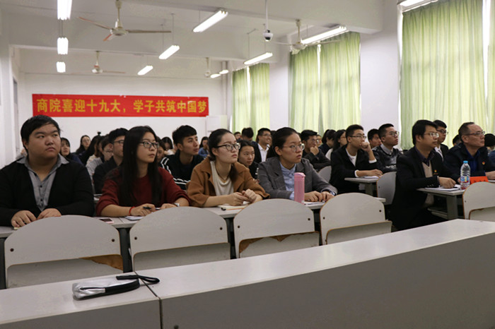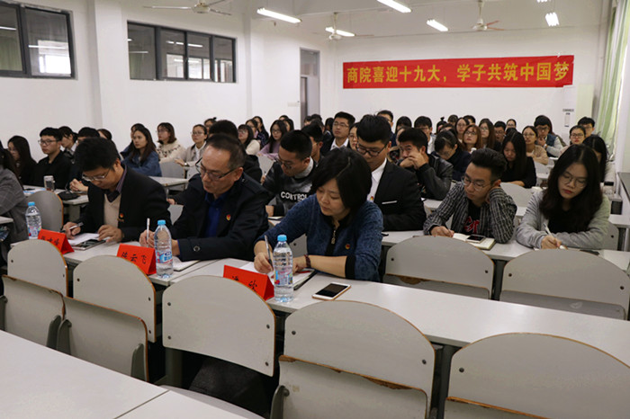 1018日上午9点,437ccm必赢国际官方网站组织师生代表在教二A431,共同收看党的十九大开幕式直播盛况。学院党委副书记陈云飞、教师代表、学生代表近80人参加了活动。
