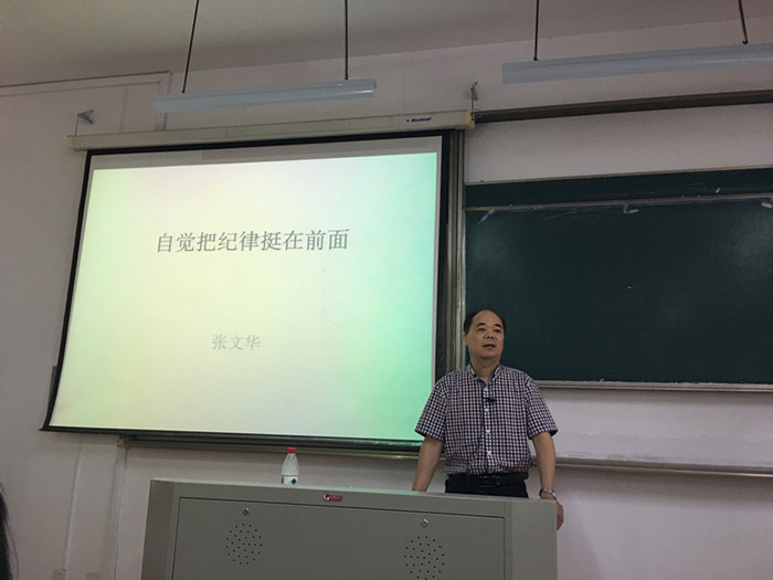 517日下午,校纪委书记张文华应邀到437ccm必赢国际官方网站作题为“自觉把纪律挺在前面”的廉政纪律教育专题报告。437ccm必赢国际官方网站党委书记邵燕主持报告会,全体教职工参加报告会。