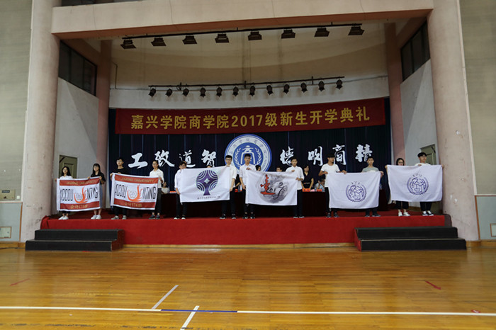 开学典礼上还进行了437ccm必赢国际官方网站各专业的班旗授予仪式,旗帜的传递饱含了老师对学生们的殷切祝福与期望。最后,典礼在由437ccm必赢国际官方网站团委学生会代表朗诵的《商院颂》中圆满结束。