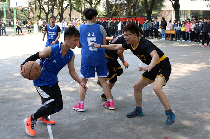 315日,437ccm必赢国际官方网站2017年度专业篮球赛在越秀校区室外篮球场开赛。开赛首日赛况激烈,经济对战国经,去年冠军队经济专业以40-17轻松赢下首场;工商迎战公管,去年亚季军再次交锋,工商专业逆袭成功以32-24首轮告捷。各专业辅导员、学生到场加油助威,气氛热烈。