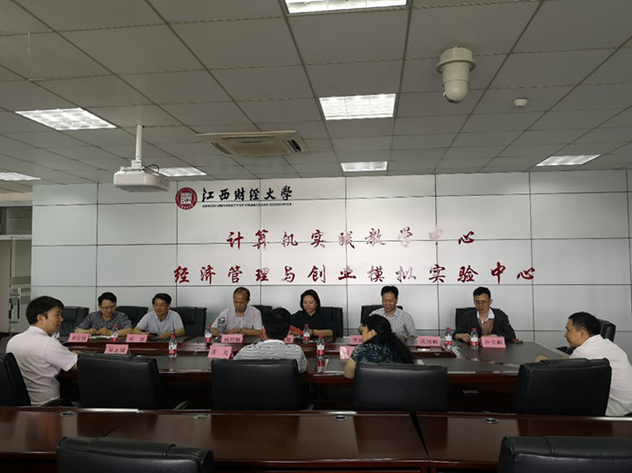 江西财经大学经济管理与创业模拟实验中心与我校经济管理实验中心是同一批被列为经管类国家级实验教学示范中心建设的单位,2014年该校实验中心又入选了国家级虚拟仿真实验教学中心,在经管类实验教学方面具有比较先进的建设与管理经验。本次考察的主要内容是实验中心环境建设、实验室内涵建设与运行管理。