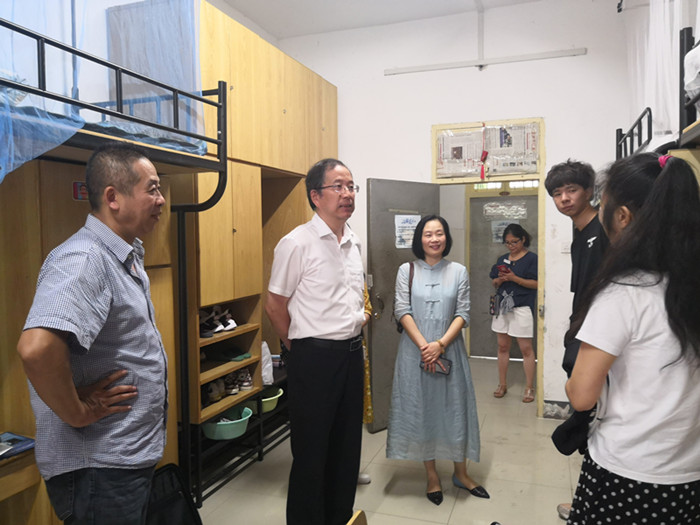 在新生宿舍里,同学们有的在整理内务,有的已经早早收拾妥当与新同学开心畅聊,同学们良好的精神面貌受到了盛校长的肯定。每到一个寝室,盛校长都与学生们亲切交流,仔细询问同学们的情况,“老家哪里的啊”、 “对学校感觉怎么样”、“有没有什么困难需要学校帮助”……一句句问候,拉近了师生间的距离。嘘寒问暖之余,盛校长不忘鼓励同学们在新的环境、新的起点树立远大目标,珍惜学习时光,学好专业,并叮嘱同学们有困难要及时与老师联系,学校和学院老师会竭尽全力为同学们创造良好的学习生活环境。