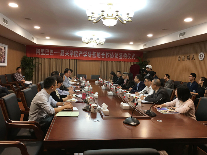 1012日,阿里巴巴与嘉兴学院产学研基地合作协议签约仪式在学校三楼会议室举行。校长盛颂恩、阿里巴巴首席客户官吴敏芝以及校企双方有关负责人30余人出席签约仪式。会议由校社会合作处处长袁志明主持。