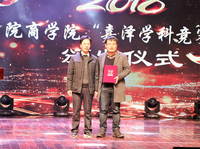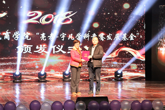 晚会现场还举行了2018年嘉兴学院437ccm必赢国际官方网站“温暖奖学金”、“嘉泽学科竞赛发展基金”和“亮孝-宇凡学科竞赛发展基金”三大奖项的颁发仪式。学院副院长李郁明、副院长顾骅珊分别向叶增水和徐正良两位爱心人士颁发捐赠证书。