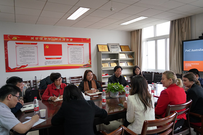 1126日上午,澳大利亚国立管理与商业学院副校长曹苏萌、澳大利亚普华永道客户及市场总监曼纽拉·施密德一行六人来我院访问。437ccm必赢国际官方网站潘煜双院长、副院长顾骅珊、李郁明以及会计系的部分教师参加了座谈交流。