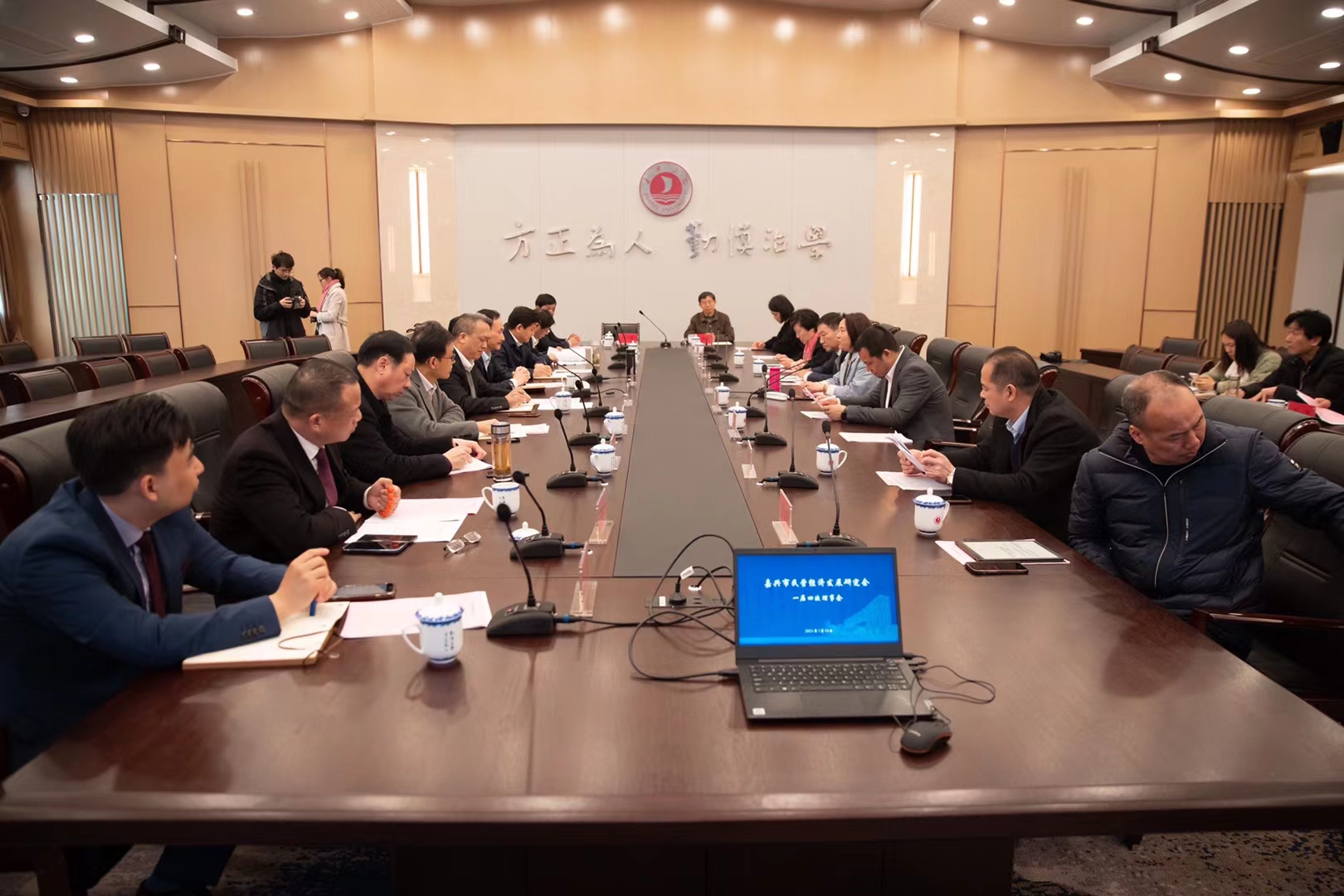 3月18日上午,437ccm必赢国际官方网站与嘉兴市民营经济研究会战略合作交流会暨嘉兴市民营经济研究会一届四次理事会在嘉兴学院召开。研究会会长金惠明和17位理事及监事出席会议。