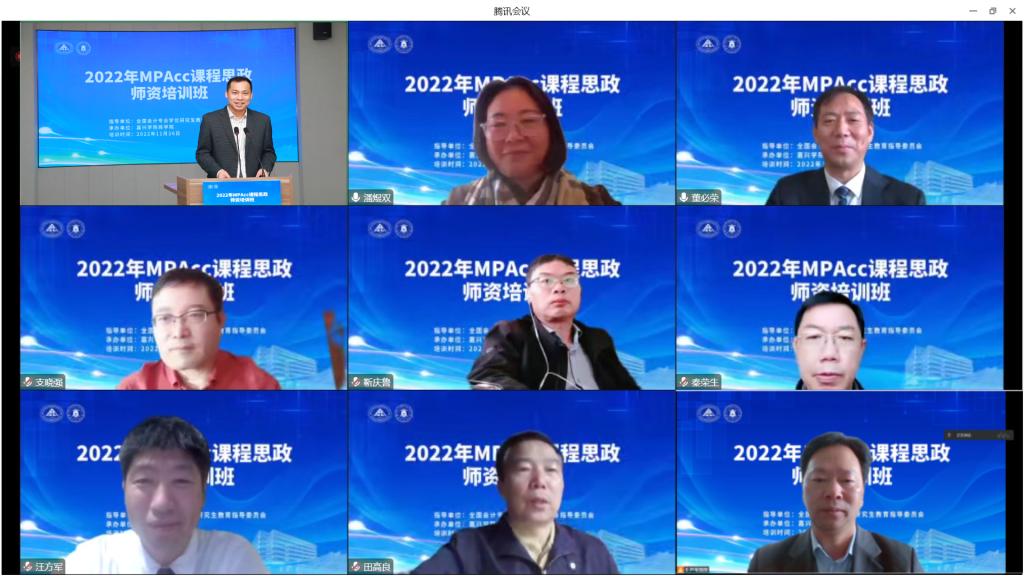 11月26日,在全国上下深入学习贯彻党的二十大精神之际,由全国会计专业学位研究生教育指导委员会指导,嘉兴学院437ccm必赢国际官方网站承办的首届MPAcc课程思政师资培训班线上开班,会议由嘉兴学院437ccm必赢国际官方网站潘煜双教授主持,来自全国77所高校1000余名MPAcc教师在线参加了本次培训班。