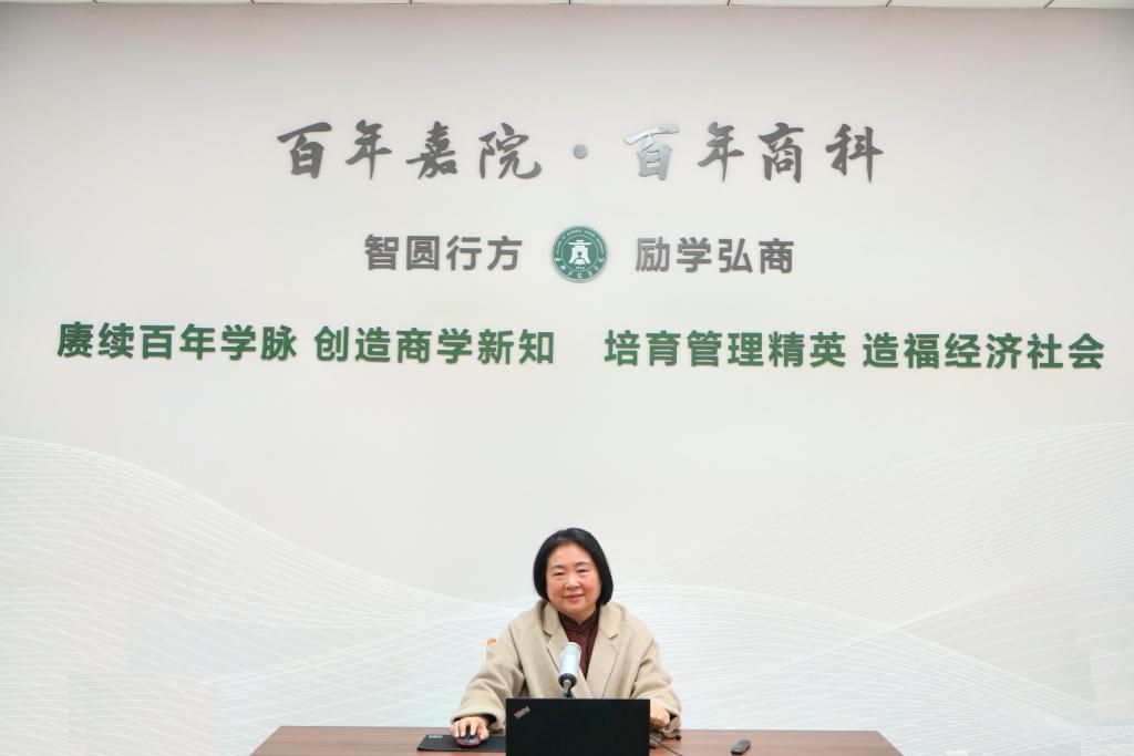 院长、院党委副书记潘煜双代表学院班子从党建与思想政治工作及安全、学科建设与研究生教育、教学工作、学生培养与管理、科学研究与社会服务、教育国际化等六个方面对学院2022年度的工作进行了全面总结。她指出,学院2021年的关键词是“突破”,2022年关键词是“沉淀”,在2022年学院进一步加强了内涵建设,不断积蓄能量,为达到下一个成果高峰夯实基础。她强调,学院的高质量发展离不开每位老师的努力,全院上下要锚定目标,接续奋斗,争取用实绩擦亮百年商科这块牌子。