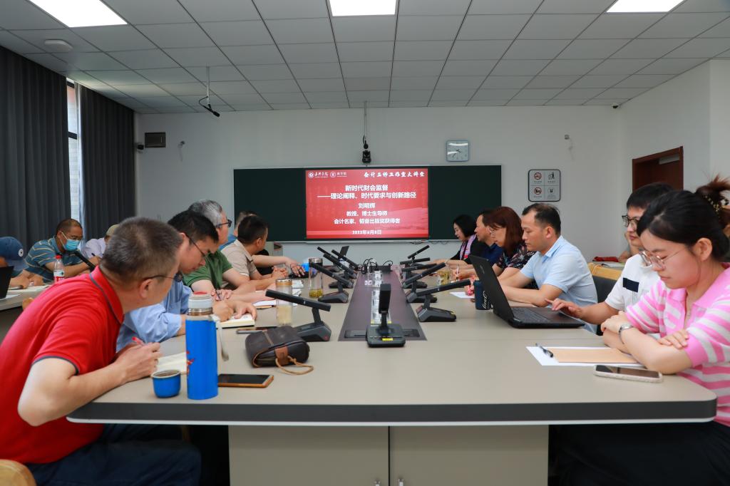 6月8日下午,会计名师工作室大讲堂在经管中心311会议室举行,财政部会计名家、博士生导师刘明辉教授应邀担任主讲。学院院长潘煜双主持,副院长李郁明、会计系和财务管理系的60余名师生到会聆听报告。