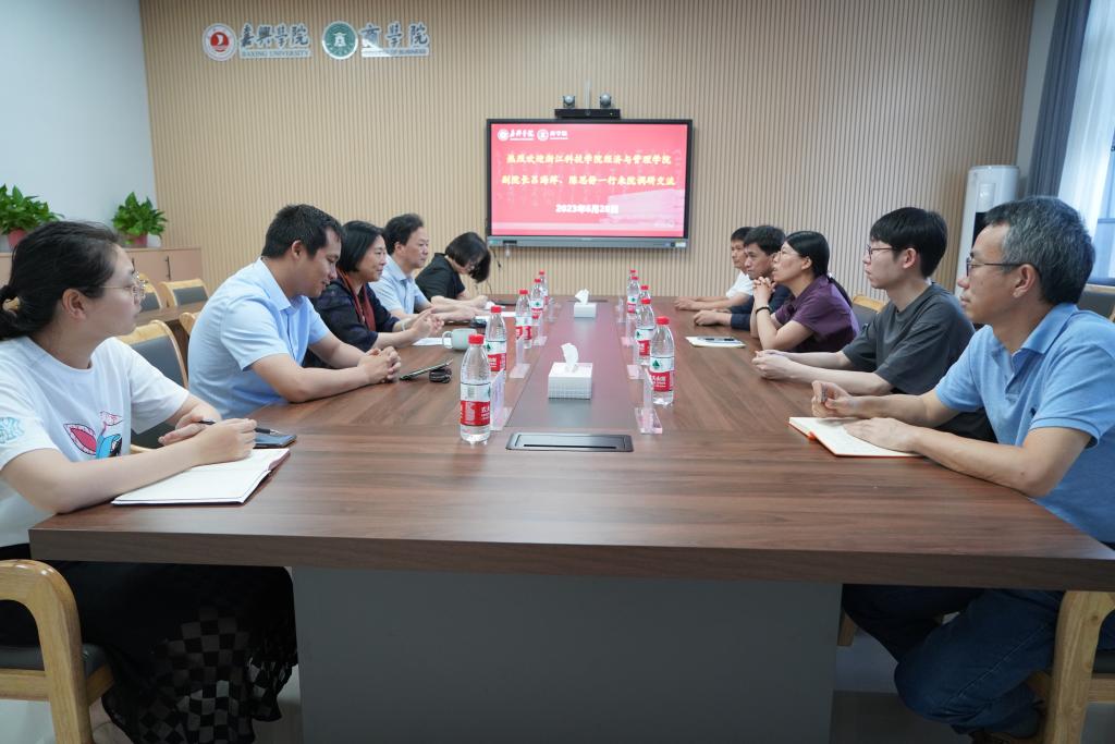 6月28日下午,浙江科技学院经济与管理学院副院长吕海萍、陈思静一行5人到437ccm必赢国际官方网站调研交流。437ccm必赢国际官方网站院长潘煜双、副院长李郁明、翁胜斌,经管实验中心和院办老师参加交流会谈。