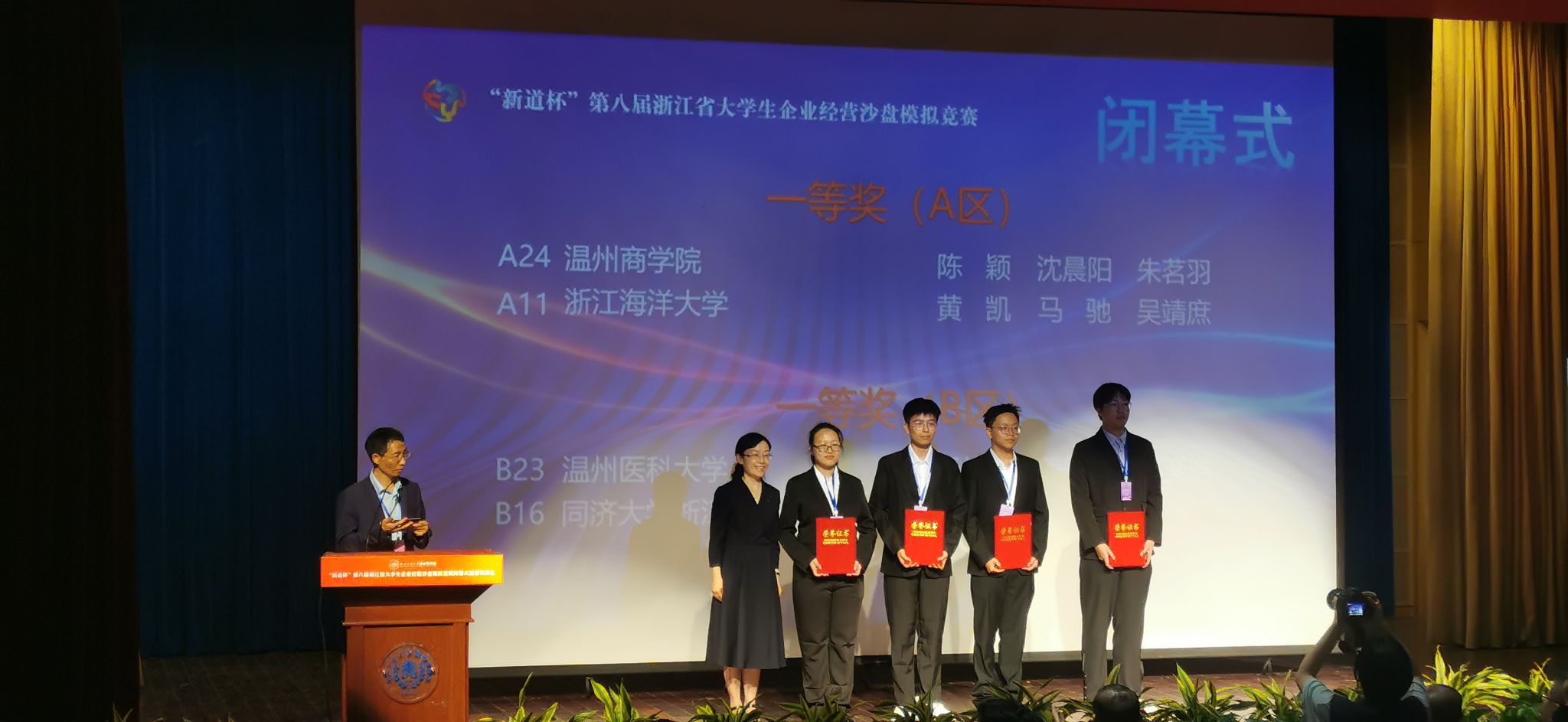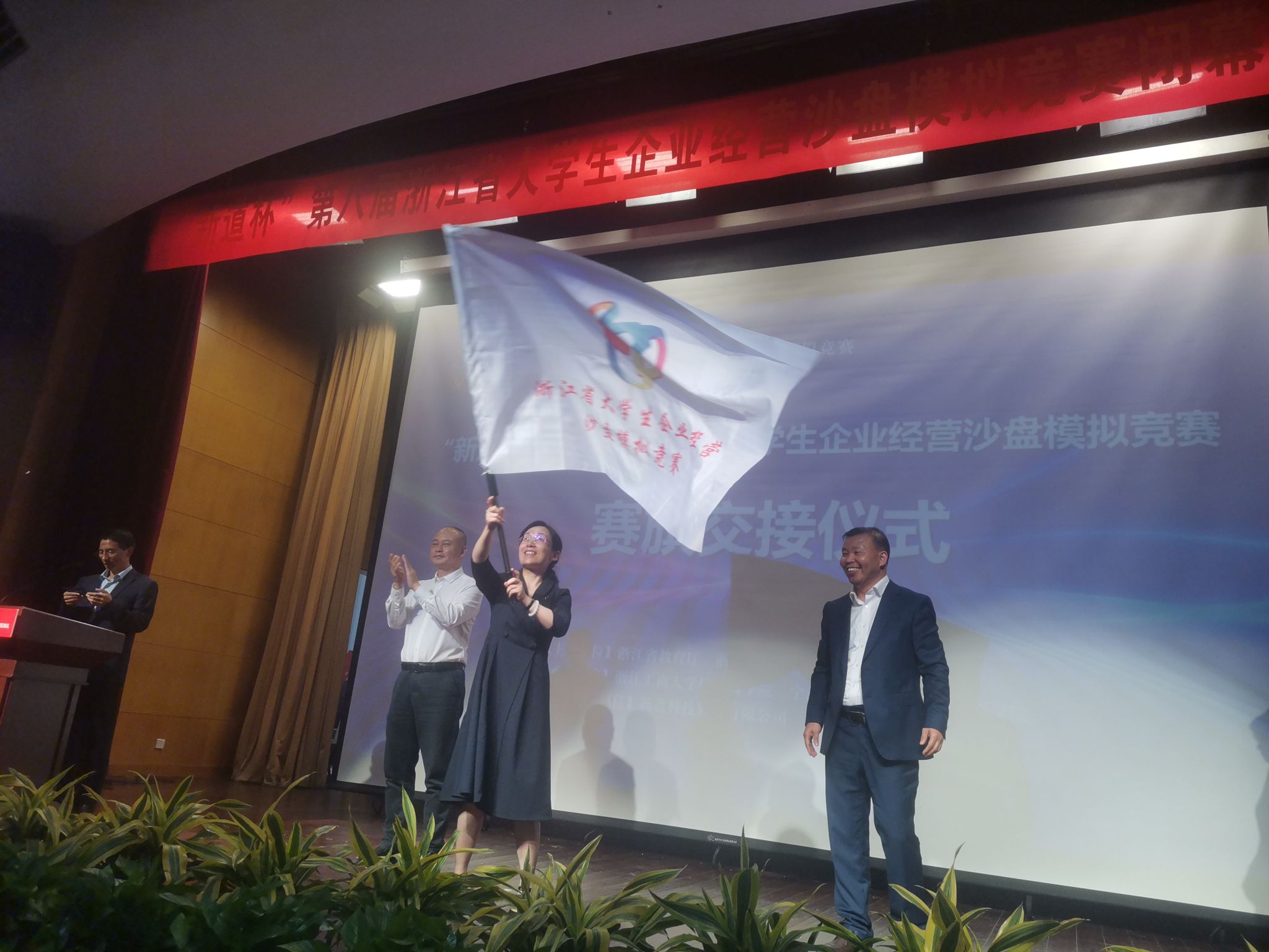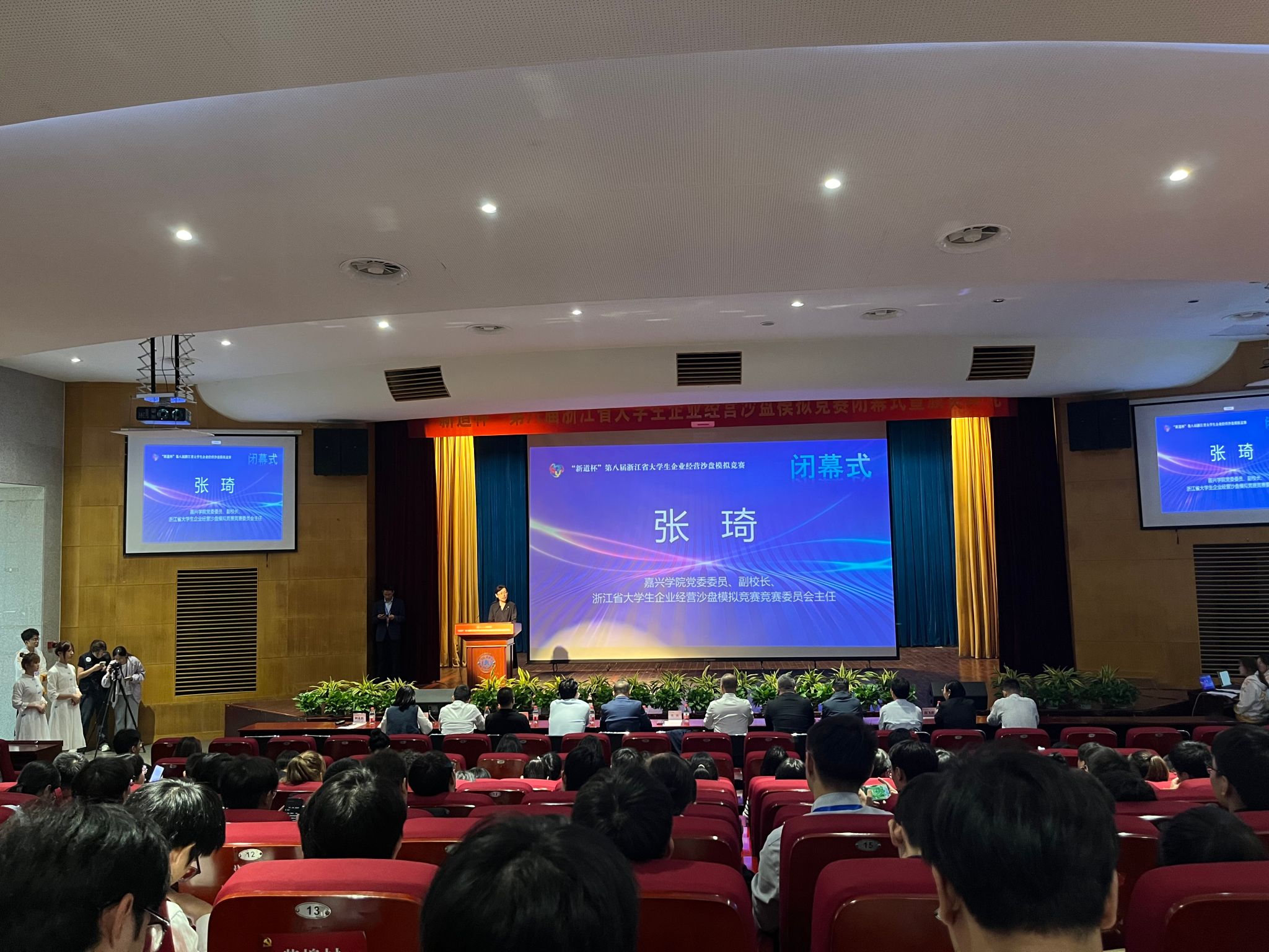 在浙江省教育厅、浙江省大学生科技竞赛委员会的指导下,在各方专家、参赛院校和社会各界的大力支持下,1028日,“新道杯”第八届浙江省大学生企业经营沙盘模拟竞赛在杭州圆满落幕。经过1021-22日(线上对抗)和1028日(现场答辩)三天紧张激烈的比拼,高职组共有16支参赛队荣获一等奖、29支参赛队荣获二等奖、47支参赛队荣获三等奖;本科组共有20支参赛队荣获一等奖、37支参赛队荣获二等奖、63支参赛队荣获三等奖。党委委员、副校长(主持日常工作)张琦、教务处处长艾宁分别出席了本次大赛的闭幕式和开幕式。