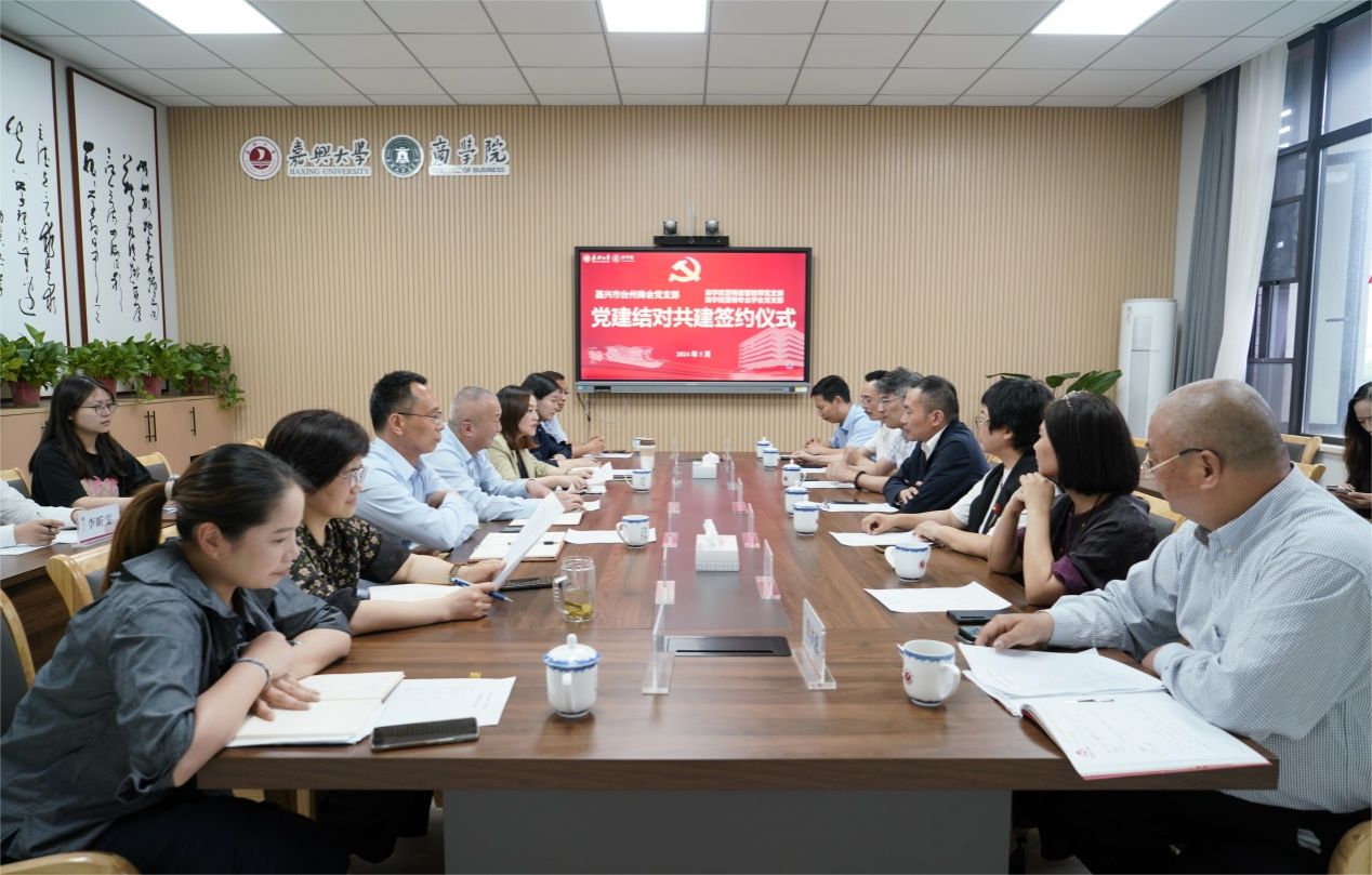 531日下午,437ccm必赢国际官方网站营销信管教师党支部、营销专业学生党支部与嘉兴市台州商会党支部在437ccm必赢国际官方网站尚德楼345会议室举行党建结对共建签约仪式。