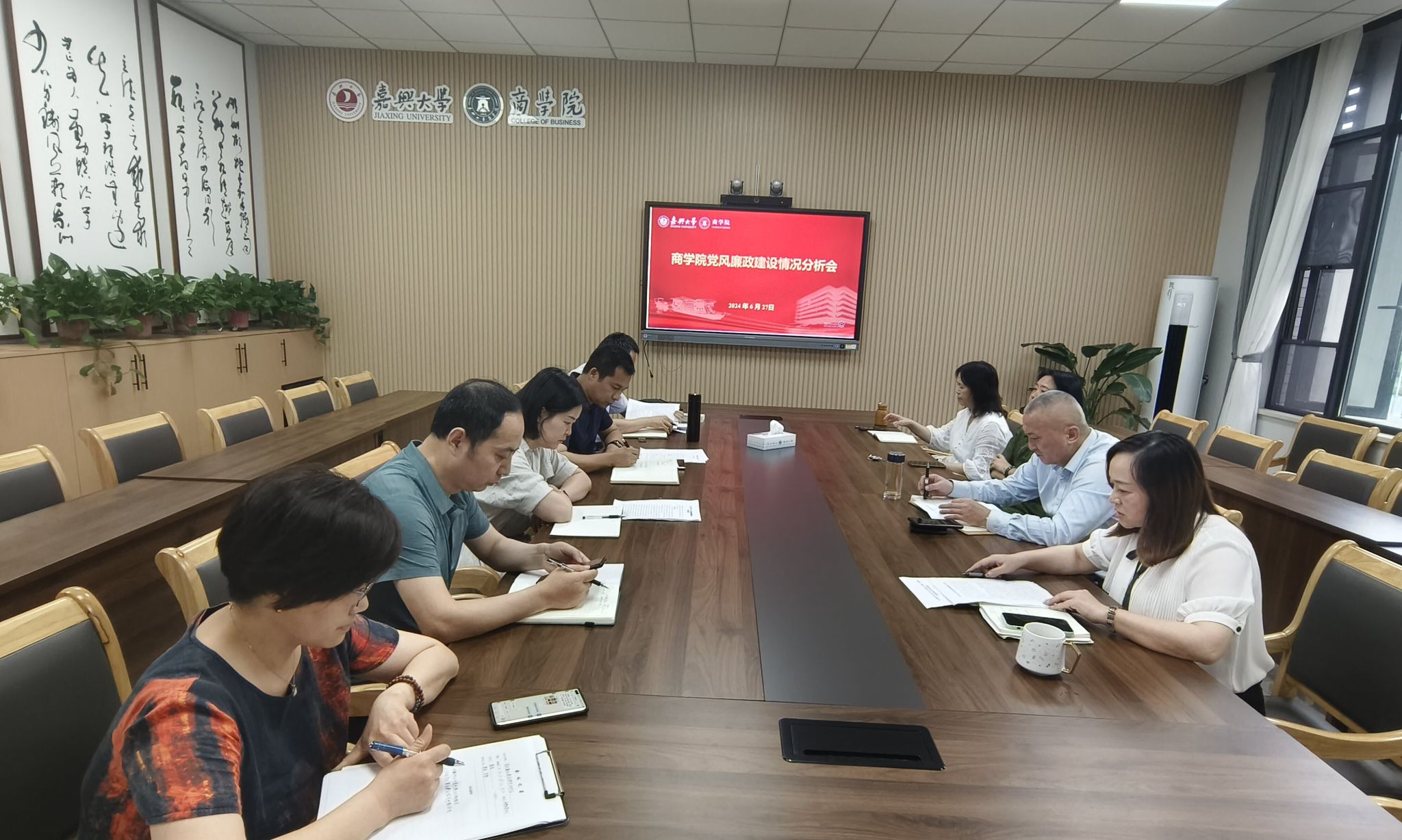6月27日下午,437ccm必赢国际官方网站召开2024年上半年党风廉政建设情况分析会。校纪委委员潘煜双、特邀监察员唐雯到会指导。学院全体党政领导班子成员参加会议。会议由院党委书记虞岚主持。