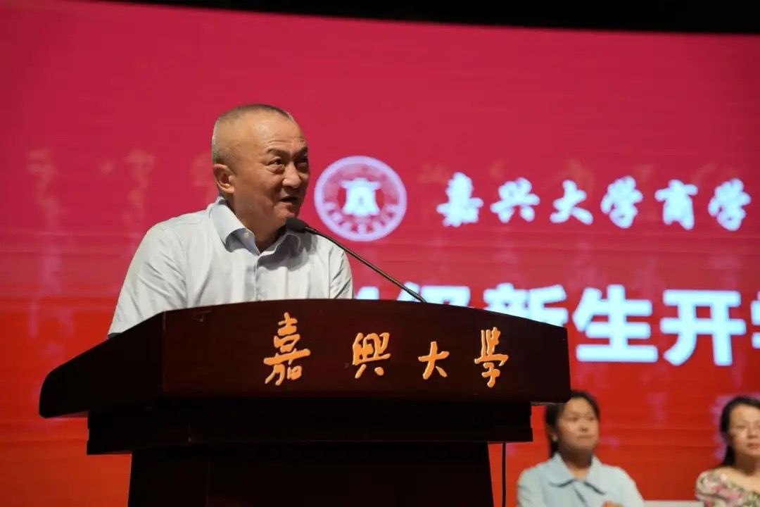 开学典礼在庄严的国歌声中拉开帷幕。学院院长李勇教授发表讲话。他代表全院师生对来自全国26个省(市)的657名本硕新生表示热烈欢迎。他指出,本届新生有三个“新”,“新大学生”、“新嘉大学子”、“新嘉大商院人”;他强调,勤奋乃为学之本,是上学之要。到了大学,要重新审视学习的意义,要注重打牢专业基础、拓宽知识广度,并培养善于思考、勇于创新、能应对复杂问题的综合能力;他希望同学们在接下来的大学生活中既要脚踏实地,锤炼本领,也能仰望星空,心系“国家事”,勇于担当作为,做新时代的有为青年。