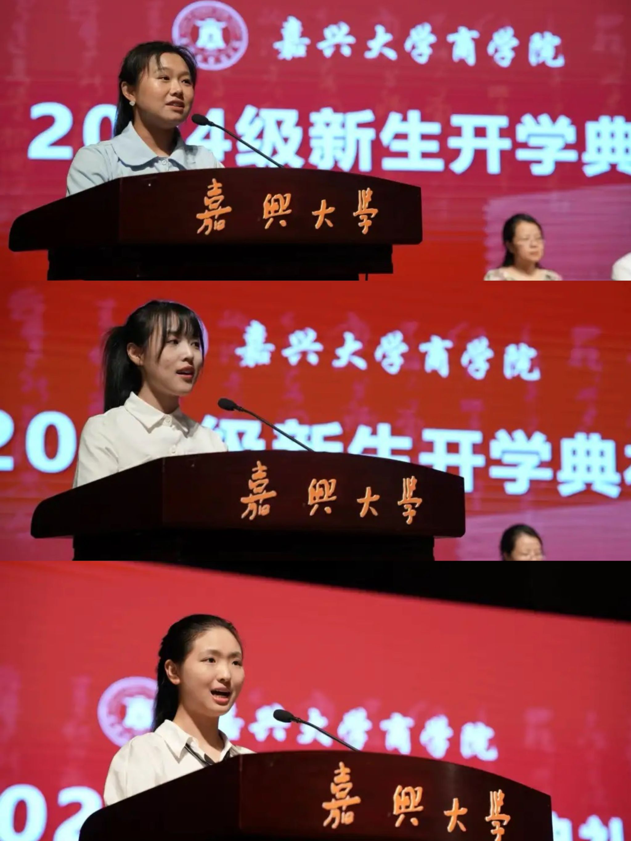 437ccm必赢国际官方网站学生会执行主席周梓金、2024级硕士研究生新生代表郑佳卉、本科生新生代表卢镜羽分别发言。他们说,作为新时代的商院人,我们要坚守初心、脚踏实地、勇攀高峰,敢为善为,不畏艰难、让商之钟声敲响,让嘉大红色火种接续相传。