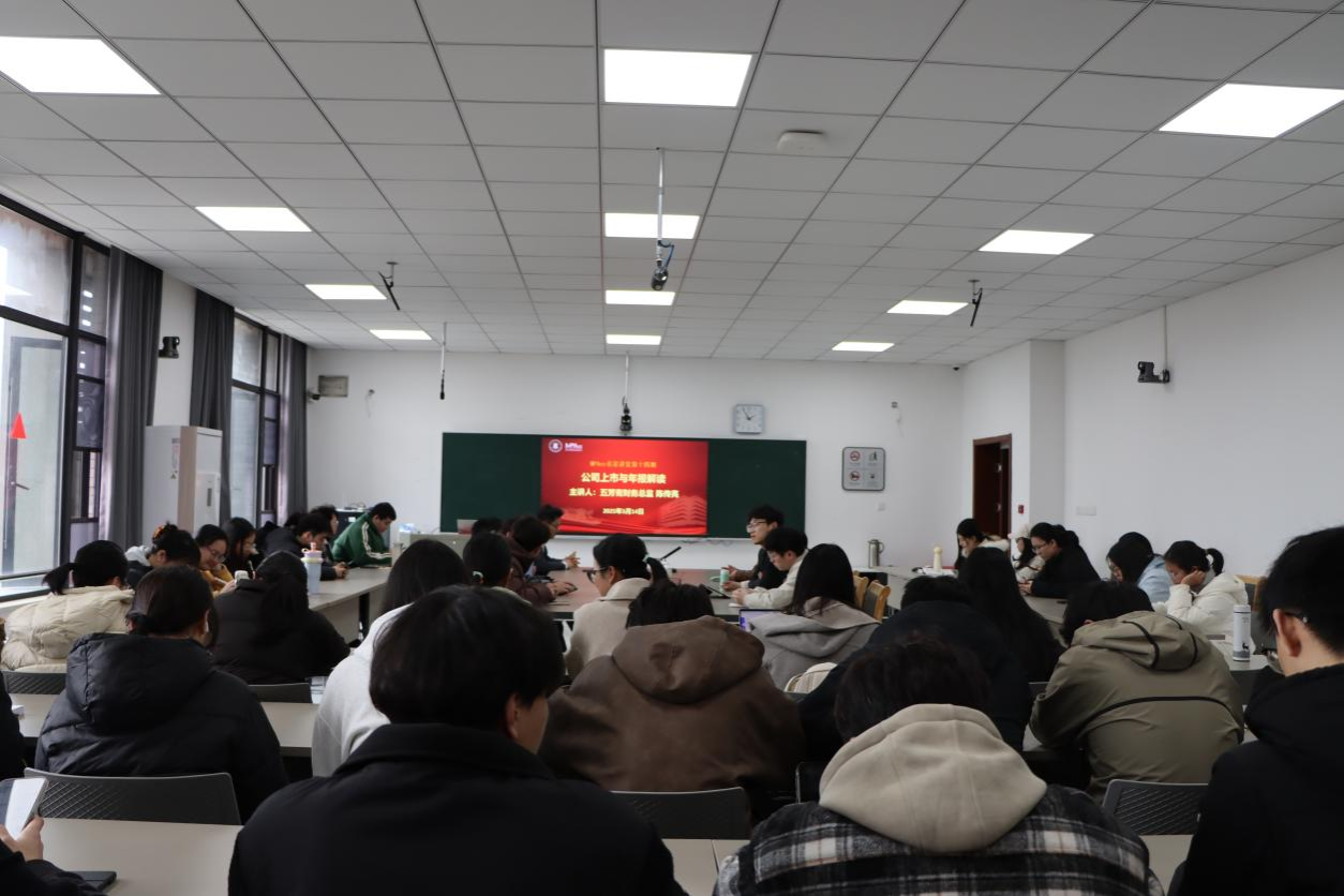 陈传亮以 “公司上市与年报解读” 为主题,深入浅出地讲解了五芳斋发展历史及上市经历、为什么要上市、上什么市、哪里上市、怎么上市和年报解读等多方面。陈总监结合喜茶、茅台等案例,详细解读了管理费用率、毛利率等财务指标,指出一切围绕规模化、市场占有率才是王道。讲座最后,陈总监勉励在座学生要想在一个行业上有所建树,一定不能浅尝辄止,唯有持续深入研究,才能实现个人的更好发展。