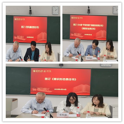 会上,签订了《党风廉政建设责任书》《意识形态工作责任书》《平安校园建设目标责任书》《消防安全管理责任书》。随后进行了师德师风警示教育。