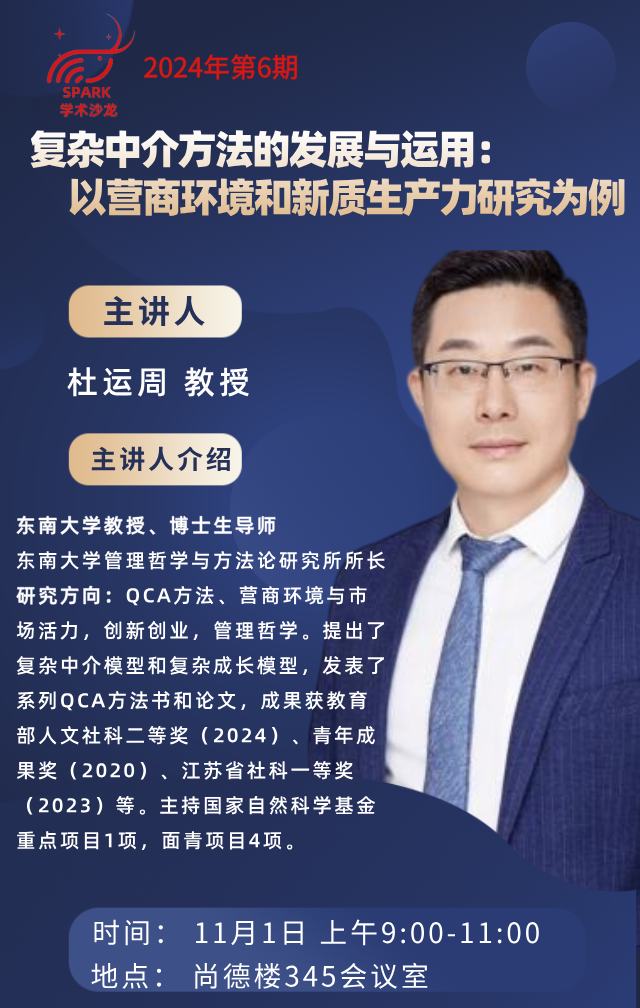 SPARK学术沙龙2024年第六期:复杂中介方法的发展与运用:以营商环境和新质生产力研究为例