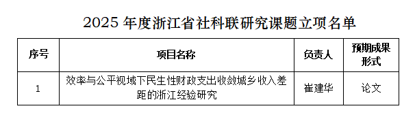 浙江省社会科学界联合会公布了2025年度浙江省社科联研究课题立项名单公示》,我院1位老师项目获得立项
