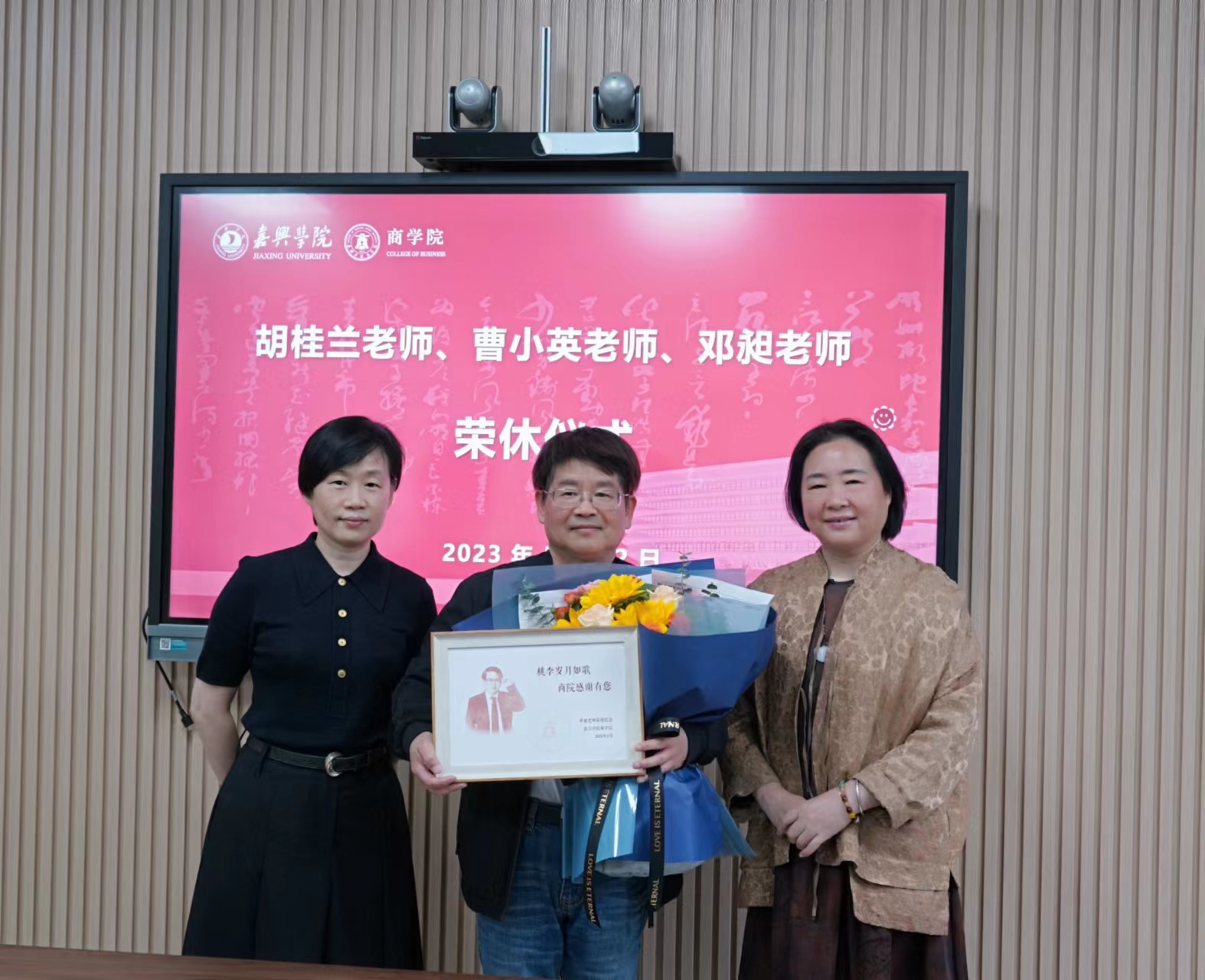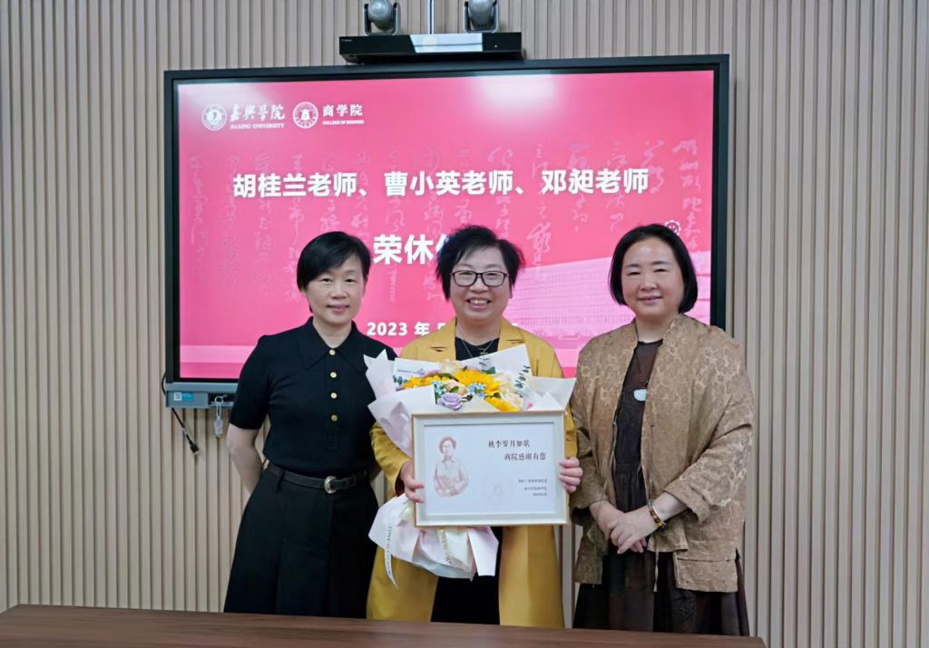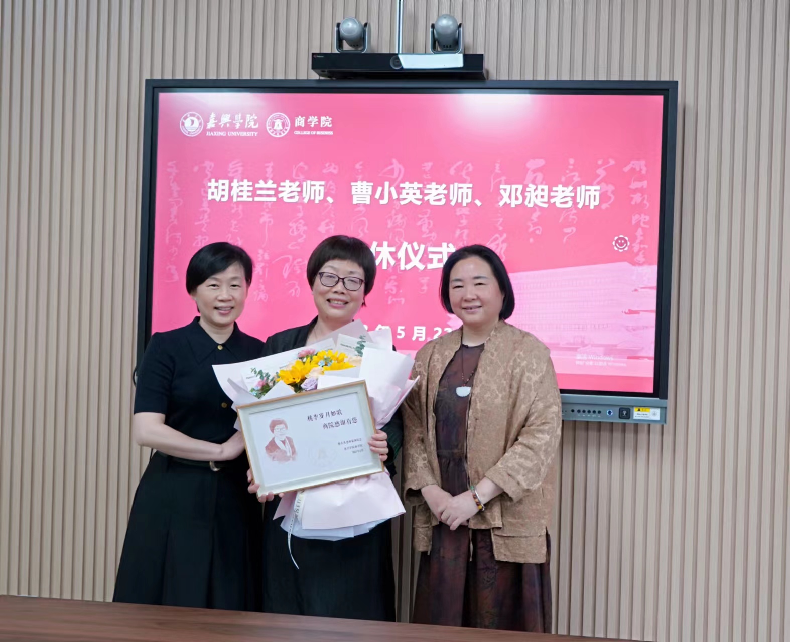 5月22日上午,437ccm必赢国际官方网站尚德楼345会议室胡桂兰、曹小英、邓昶老师举行荣休仪式。学院党政领导班子成员及会计系、教务办、经管中心教师代表参加仪式。