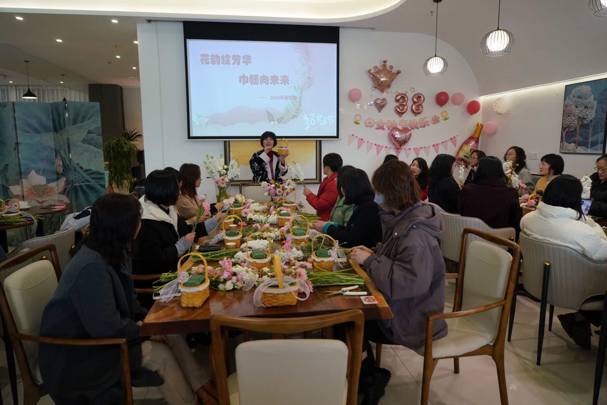 活动伊始,一场别开生面的鲜花知识讲座吸引了众多老师们的目光。花艺师详细讲解了鲜花的种类、特点以及插花技巧,让大家对鲜花有了更深入的了解。同时,花艺师还分享了一些鲜花养护的小窍门,让老师们能够在家中也能轻松打理出美丽的花束。