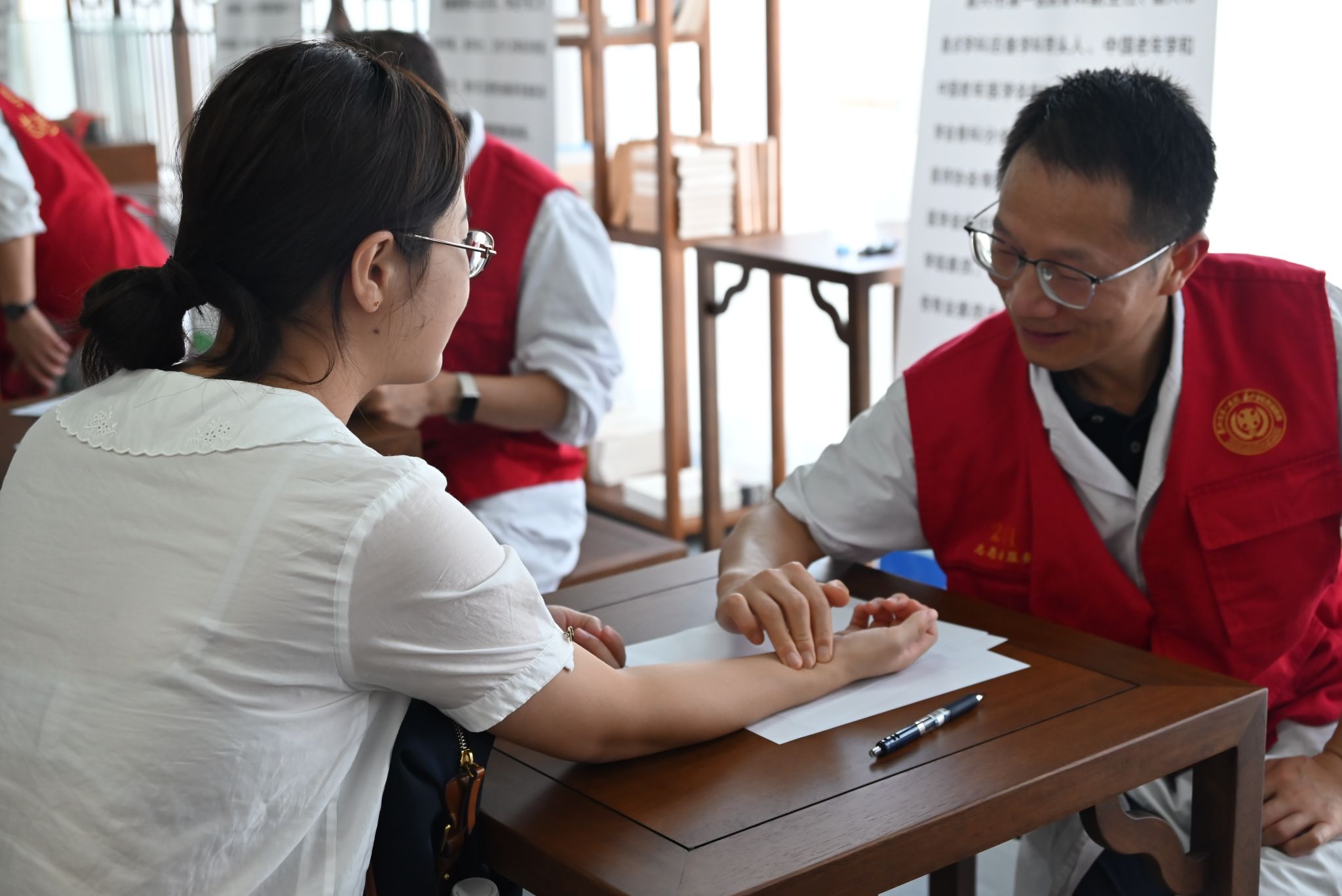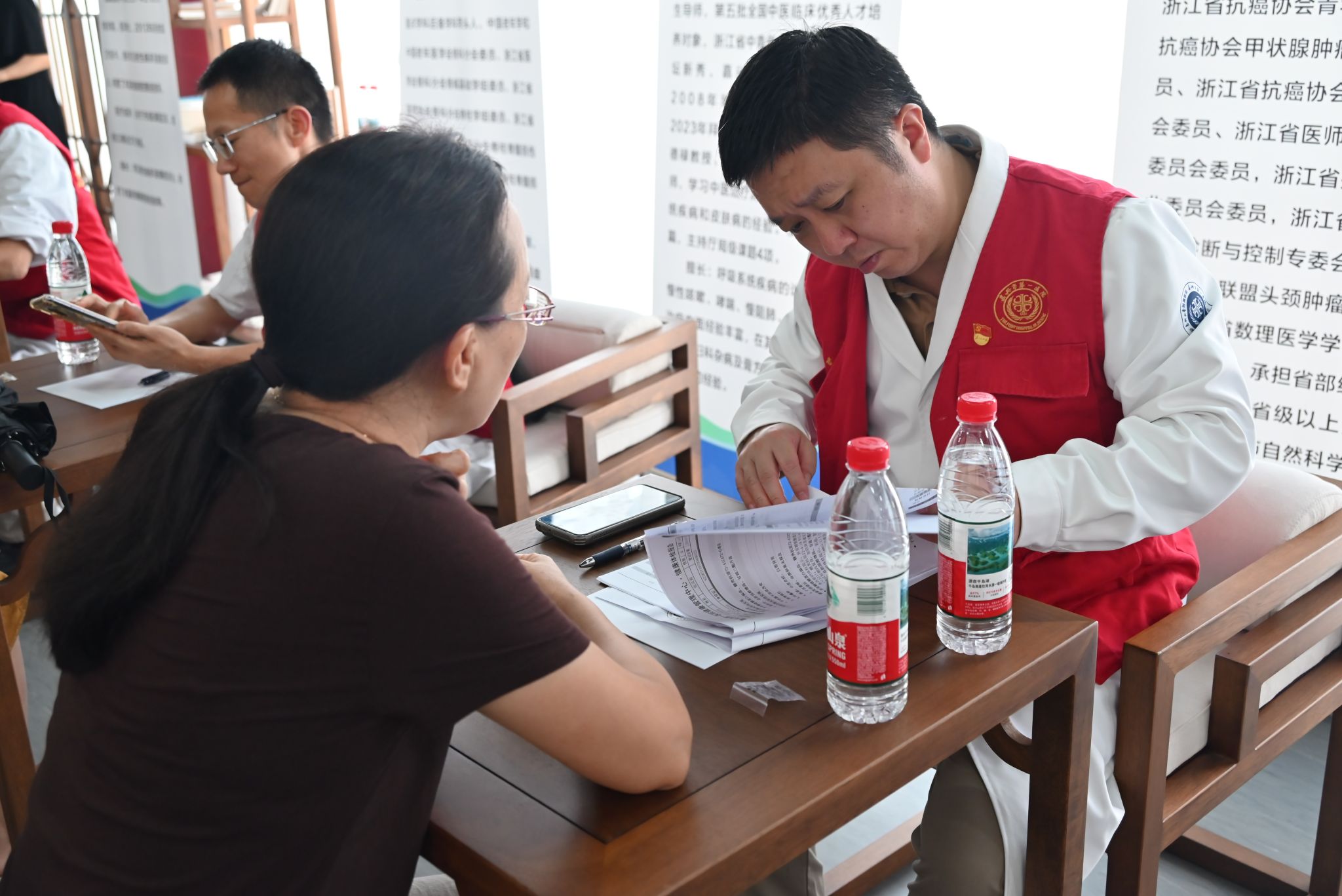 专题讲座结束后,现场诊疗环节正式开启。现场涵盖中医、内分泌科、心血管、甲状腺眼科、骨科、疼痛科健康管理等多个领域的专家团队坐诊,为教职工提供“一对一”免费诊疗服务。诊疗现场秩序井然,专家们凭借丰富的临床经验,细致为每位教职工问诊查体参加活动的教职工们纷纷表示此次诊疗活动特别有意义,可以零距离和无障碍地咨询自身健康和诊疗问题,名医专家也解答地非常详细表达了希望学校工会能继续为老师们提供这类关怀教师健康的暖心活动的想法