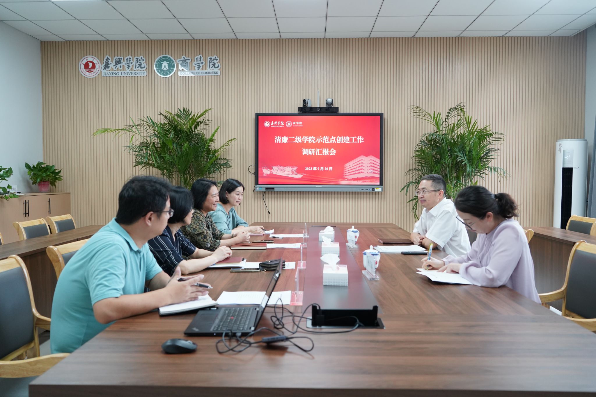 9月20日下午,校党委委员、纪委书记、省监委驻嘉兴学院监察专员陈新友一行到437ccm必赢国际官方网站调研清廉二级学院示范点创建工作,校纪检监察室、巡察办副主任杨碧瑜随同调研。437ccm必赢国际官方网站党委书记邵燕、院长潘煜双,党委副书记、纪委书记潘欣等参加座谈交流。