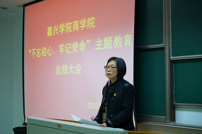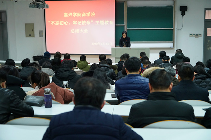 党委书记邵燕代表437ccm必赢国际官方网站党委从主题教育开展情况、取得成效、存在问题和今后工作方向四个方面作总结报告。她指出,自“不忘初心、牢记使命”主题教育启动以来,学院党委在校党委的精心指导下,严格按照《中共嘉兴学院委员会关于开展“不忘初心、牢记使命”主题教育的实施意见》,坚持“抓思想认识到位、抓检视问题到位、抓整改落实到位、抓组织领导到位”,将主题教育与立德树人、教书育人结合起来,与学校申硕创大等各项中心工作结合起来,着力解决师生最关心最直接最现实的问题,实现了主题教育理论学习有收获、思想政治受洗礼、干事创业敢担当、为民服务解难题、清正廉洁作表率目标。邵燕指出,开展“不忘初心、牢记使命”主题教育,虽然在时间安排上有节点,但在责任落实上只有进行时、没有完成时。对进一步巩固升华主题教育成果,她提出四点要求:一是以更高标准持续深入抓好理论武装;二是以组织力提升为重点持续强化基层党组织建设;三是抓住问题整改推进学院高质量发展;四是着眼挺纪守规营造干事创业的氛围。