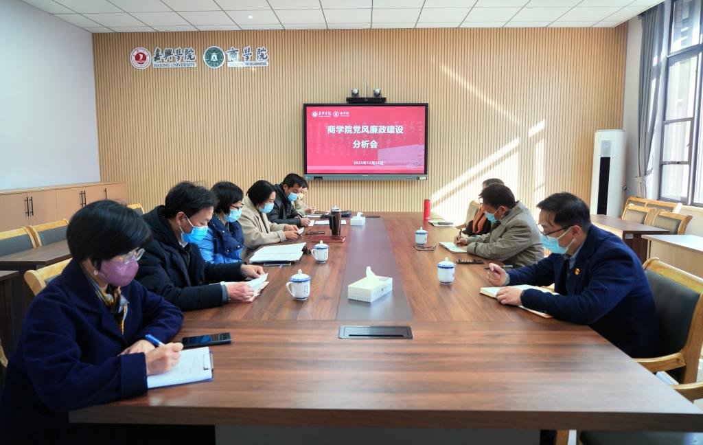 12月15日下午,437ccm必赢国际官方网站召开2022年下半年党风廉政建设情况分析会,校党委书记卢新波莅会指导,校办主任王立玮参加会议。学院党委班子成员、学院特约监察员参加分析会。分析会由437ccm必赢国际官方网站党委书记邵燕主持。
