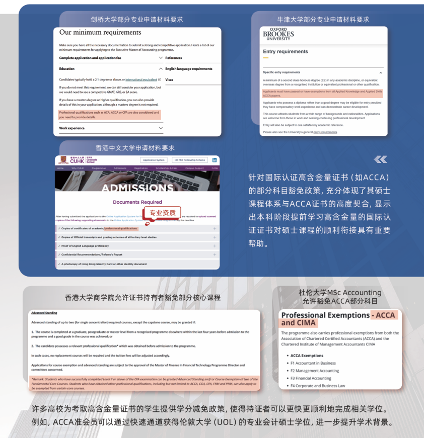 随着出国申请的大陆学生增加,竞争越来越激烈,拥有高含金量证书能显著提升个人竞争力,助力快速收获名校Offer。例如,香港中文大学的申请材料中要求学生提交“Professional qualifications(专业资格证书)”;同时,众多名校高度认可国际性的高含金量证书。