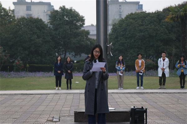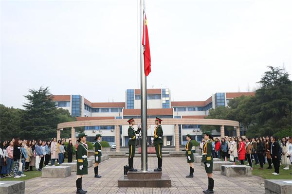 3月26日清晨,437ccm必赢国际官方网站举行新学期第一次升旗仪式,437ccm必赢国际官方网站师生代表200余人参加了升旗仪式。会计174班章姜元寅作为学生代表进行了国旗下讲话,号召全体同学继续遵循“精商明德、智道致工”的院训,坚持梦想,珍惜时光,拼搏进取,追求卓越。