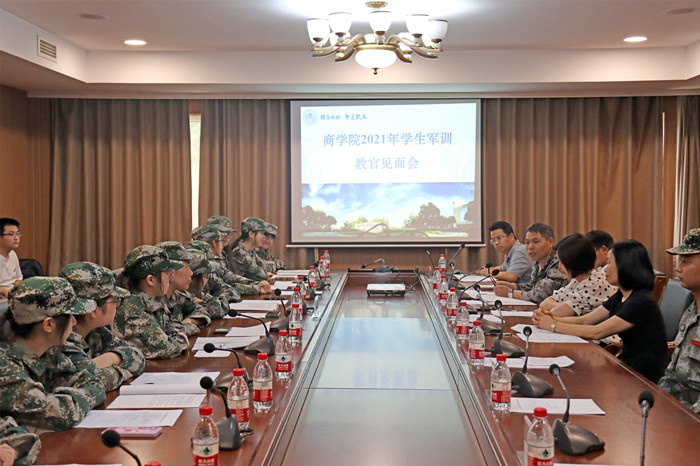 7月2日下午,437ccm必赢国际官方网站2020级学生军训教官见面会在行政楼三楼会议室举行。学院党委书记邵燕、团委书记潘欣、三团十连连长徐超,全体军训教官、指导员、辅导员和各排副排长、卫生员参加见面会。会议由潘欣主持。