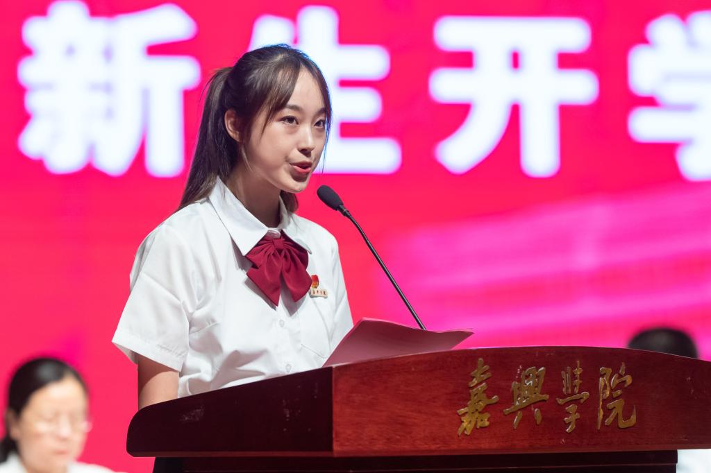 财务管理专业2011届校友、中国五矿期货有限公司杭州营业部总经理钱赟作为校友代表发言,她结合自己当年作为新生入校时的感受及学生干部经历,对在座新生提出三点建议,她希望学弟学妹们保持好奇心与批判思维、牢记责任心与创新思维、常怀包容心与开放思维,乘风破浪、奋勇前进,仰望星空赓续初心,脚踏实地坚定匠心,积淀内功丰盈内心,天道酬勤永葆童心。永做前进路上的追梦人!在校生代表、学生会主席会计专业李昕珈,2022级新生代表、工商管理专业钟嘉瑜分别发言。