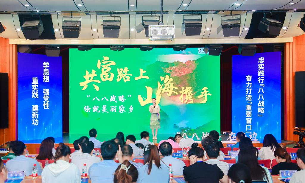 郑子雯以《共富路上 山海携手——“八八战略”绘就美丽家乡》为题,讲述了她成长过程中见证家乡丽水遂昌在“八八战略”山海协作工程下与南湖携手共进、奔赴共富,发生了沧桑巨变,而她自己也在“八八战略”指引下积极参与家乡建设,从一个“八八战略”的见证者,蜕变成为了一个光荣的实践者的动人故事,诠释了“八八战略”实施20年来浙江的精彩蝶变和奋力推进“两个先行”的生动实践。
