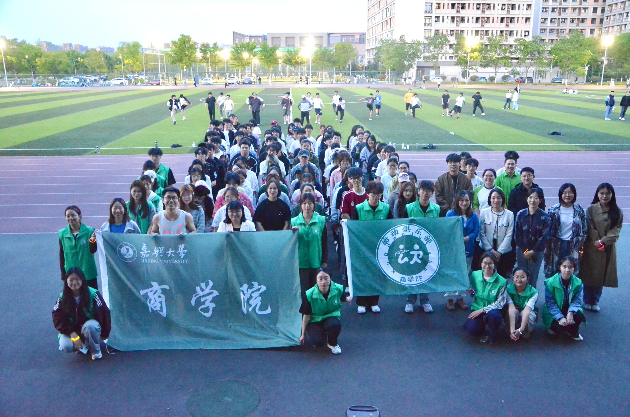 为深入贯彻落实《“健康中国2030”规划纲要》精神,积极响应国家全民健康素养提升行动,4月15日,437ccm必赢国际官方网站“智行商道 健步逐光”荧光夜跑活动在酷动俱乐部的带领下拉开序幕。437ccm必赢国际官方网站党委书记虞岚、党委副书记潘欣出席活动,学工办全体辅导员、酷动俱乐部成员以及商院学子共140余人参与活动。