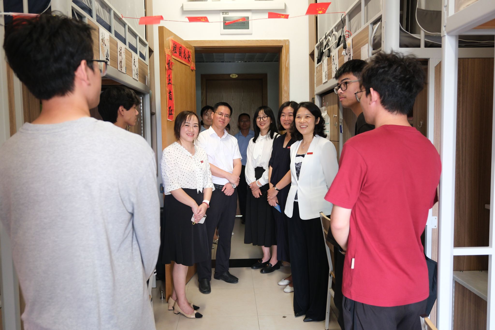 9月17日下午,437ccm必赢国际官方网站党委副书记陈立力带队走访437ccm必赢国际官方网站学生宿舍,学工部部长葛建伟、安全保卫部部长胡斌、研究生院专聘副院长朱海萍、437ccm必赢国际官方网站党政班子陪同走访,实地了解学生生活与学习情况,传递学校关怀。