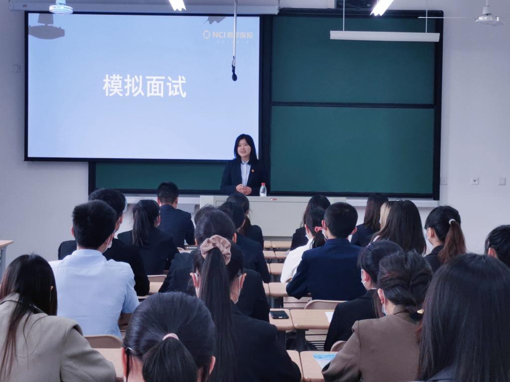 本次模拟面试共对接了20家企业,收到872份简历,初审通过率达67%。其中新华保险和浙江墨芷信息科技有限公司采取线下面试,其余公司进行线上面试考核。新华保险还开展了线下宣讲会,对公司进行了详细的介绍,激发同学们的参与热情。在整个过程中,同学们从个人简历,面试着装等方面进行了精心的准备,各公司考官在面试过程中也秉持客观公正的态度,面试结束后耐心回答同学们的问题。截止当前,已有14家企业投出实习签约意向,意向签约160人。