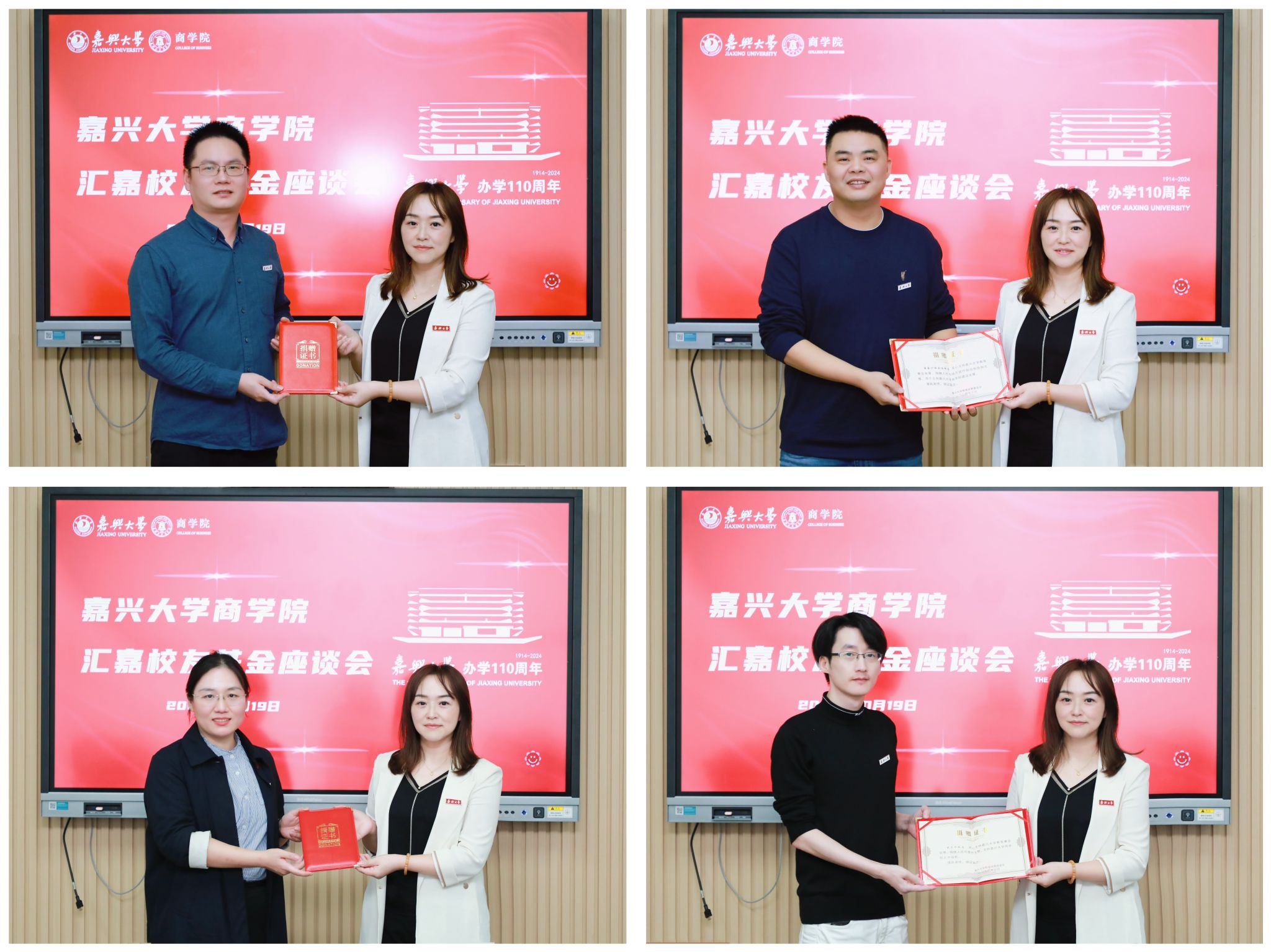 捐赠人、学校升本后的校友,浙江容诚会计师事务所业务合伙人叶增水浙商银行嘉兴分行运营科技部总经理杨华、嘉兴市纪委二级主任科员叶明明、杭州时羽科技有限公司总经理金大兴、浙江嘉康电子股份有限公司财务总监吴光良、嘉兴市国土空间规划研究有限公司办公室主任孟雅慧应邀参加座谈。437ccm必赢国际官方网站MPAcc教育中心主任、437ccm必赢国际官方网站原院长潘煜双及学院党委书记虞岚出席座谈,座谈由学院党委副书记潘欣主持,汇嘉校友基金办公室学生代表、相关辅导员也参加本次座谈