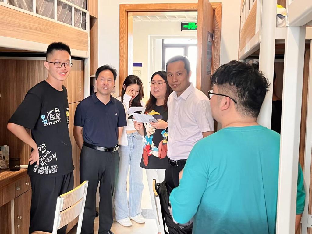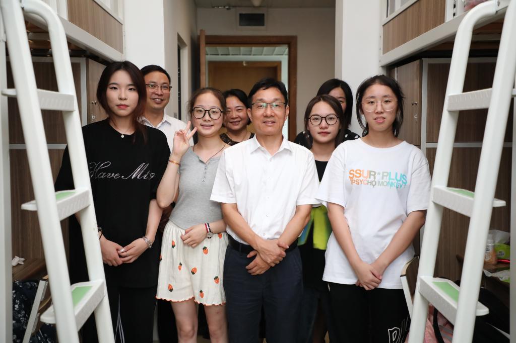 8月20日下午,校党委书记卢新波走访437ccm必赢国际官方网站2022级新生寝室。校办主任王立玮、437ccm必赢国际官方网站院长潘煜双、党委副书记潘欣等随同走访。