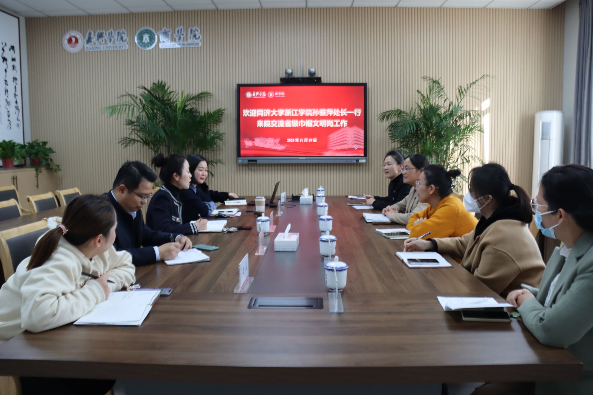 11月29日下午,同济大学浙江学院孙雅萍处长一行来我院交流巾帼文明岗工作。校妇联执委、副主席徐蓉、学院党委副书记、妇委会主任兼创岗岗长潘欣及岗员代表参加了会议。