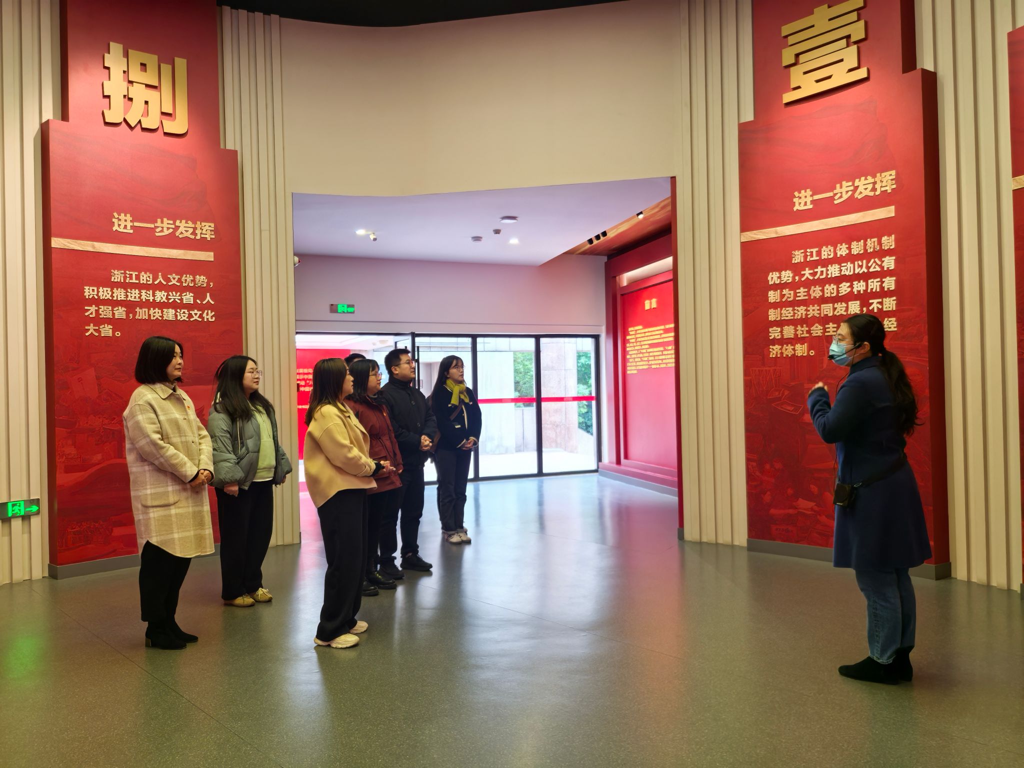 12月13日上午,437ccm必赢国际官方网站党委书记虞岚、党委副书记潘欣带领学院学生工作办公室-浙江省巾帼文明岗全体岗员一行10余人前往嘉兴南湖革命纪念馆二代馆参观“红船领航--‘八八战略’”嘉兴实践主题展。