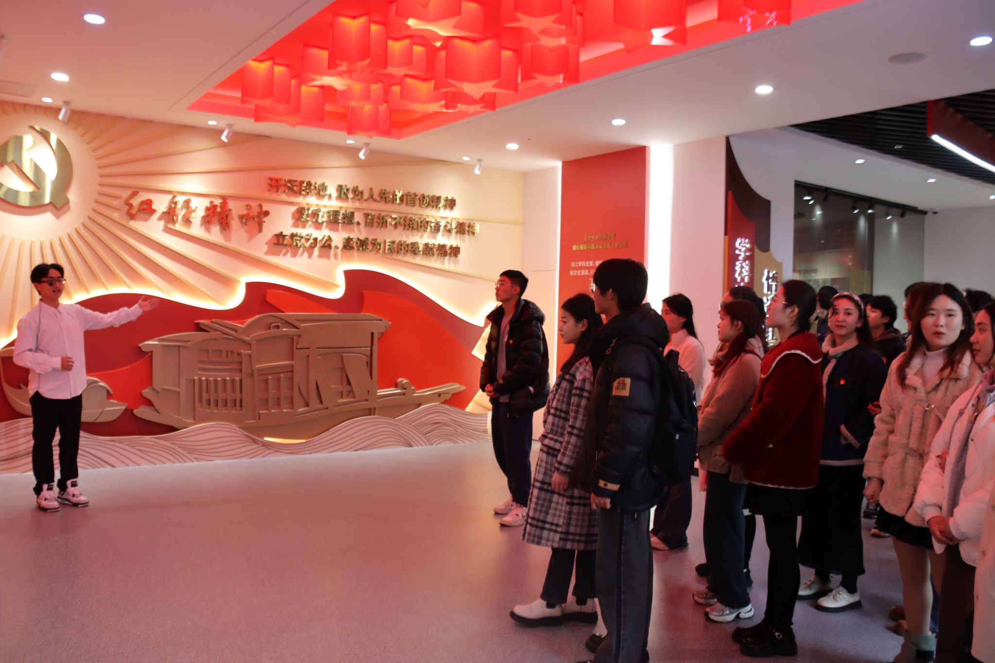 全体党员共同前往南湖革命纪念馆参观学习。437ccm必赢国际官方网站志愿讲解员为党员们生动讲述了中国共产党开天辟地、敢为人先的光辉历程。在二楼“中共一大纪念馆”展示场景前,党员们驻足凝视,他们表示,红船精神是激励一代代党员不忘初心、牢记使命的强大精神力量,青年学生要准确把握红船精神的丰富内涵和时代价值。党员们还参观了我校红船精神育人成果展示馆,深刻感受了学校红船精神育人发展成果。