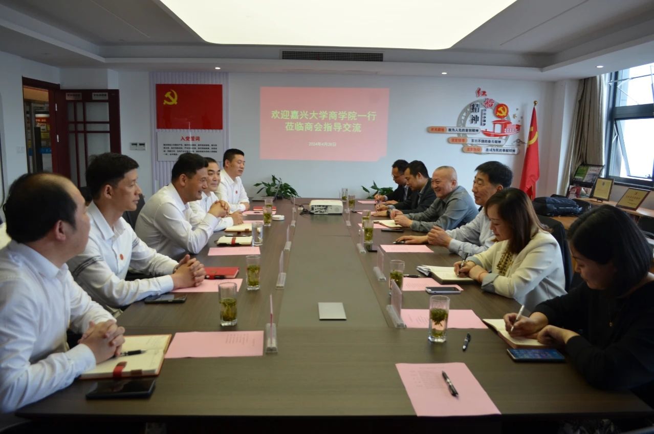 428日,437ccm必赢国际官方网站党委书记虞岚一行前往嘉兴市安徽商会进行党建合作共建洽谈。安徽商会党支部书记、秘书长许承业、会长吕焕志等代表参加洽谈会。