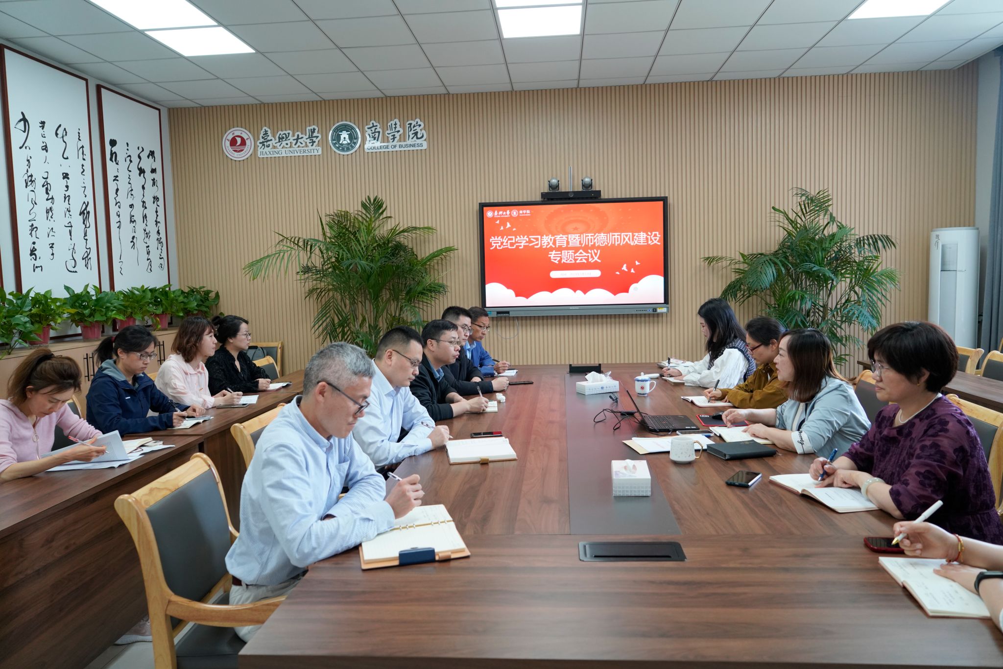511日,437ccm必赢国际官方网站在尚德楼345会议室召开党纪学习教育暨师德师风建设专题会议。会议由院党委书记虞岚主持。学院教师代表、三办主任、全体辅导员参加会议。