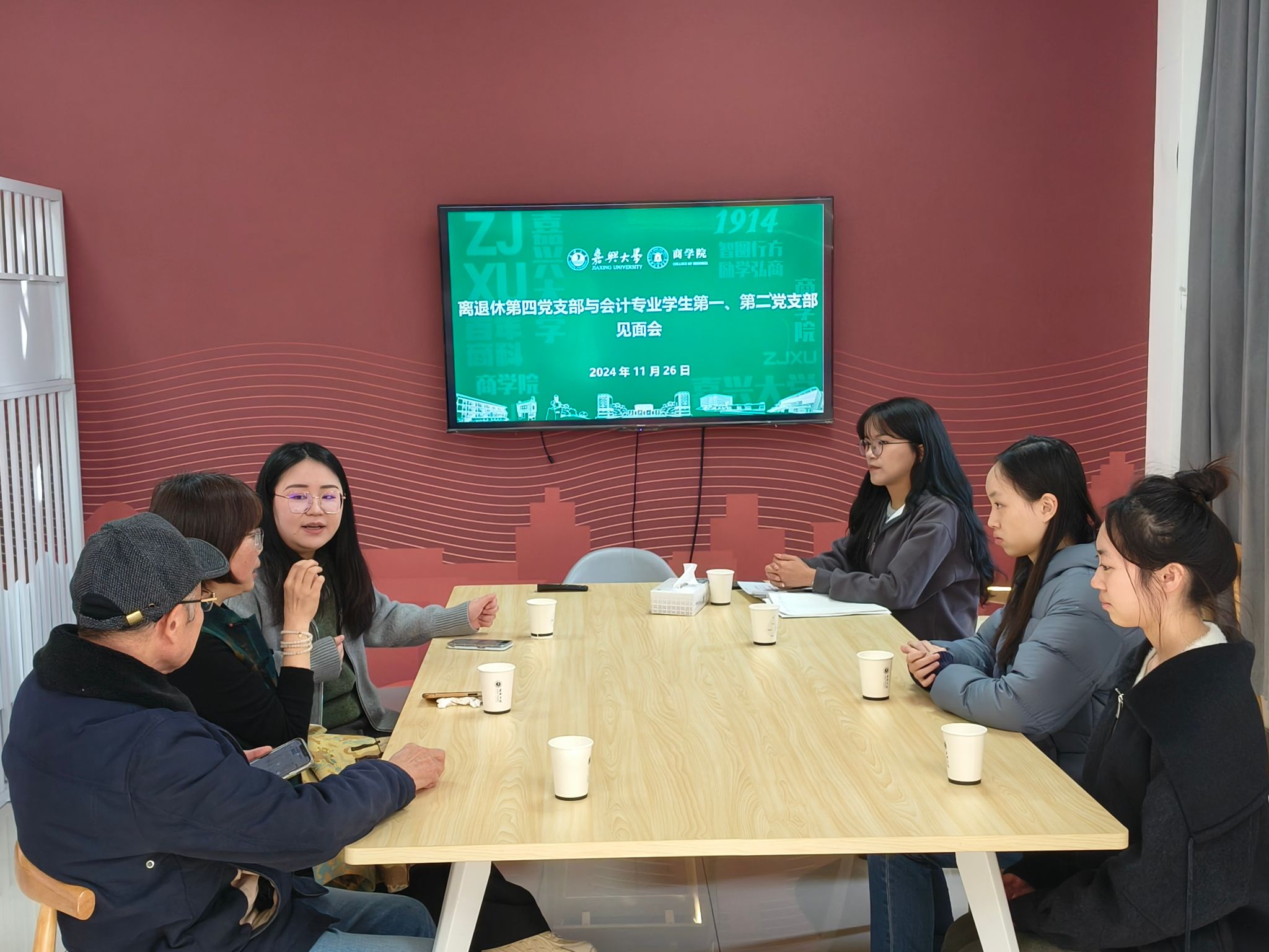 1126日,437ccm必赢国际官方网站会计专业学生一、二党支部与离退休第四党支部在尚德楼355开展“薪火相传,老少共建”主题见面会,离退休第四党支部委员傅友土、党员代表曹小英,437ccm必赢国际官方网站会计专业学生二党支部书记李雨嘉以及师生党员代表参加见面会。