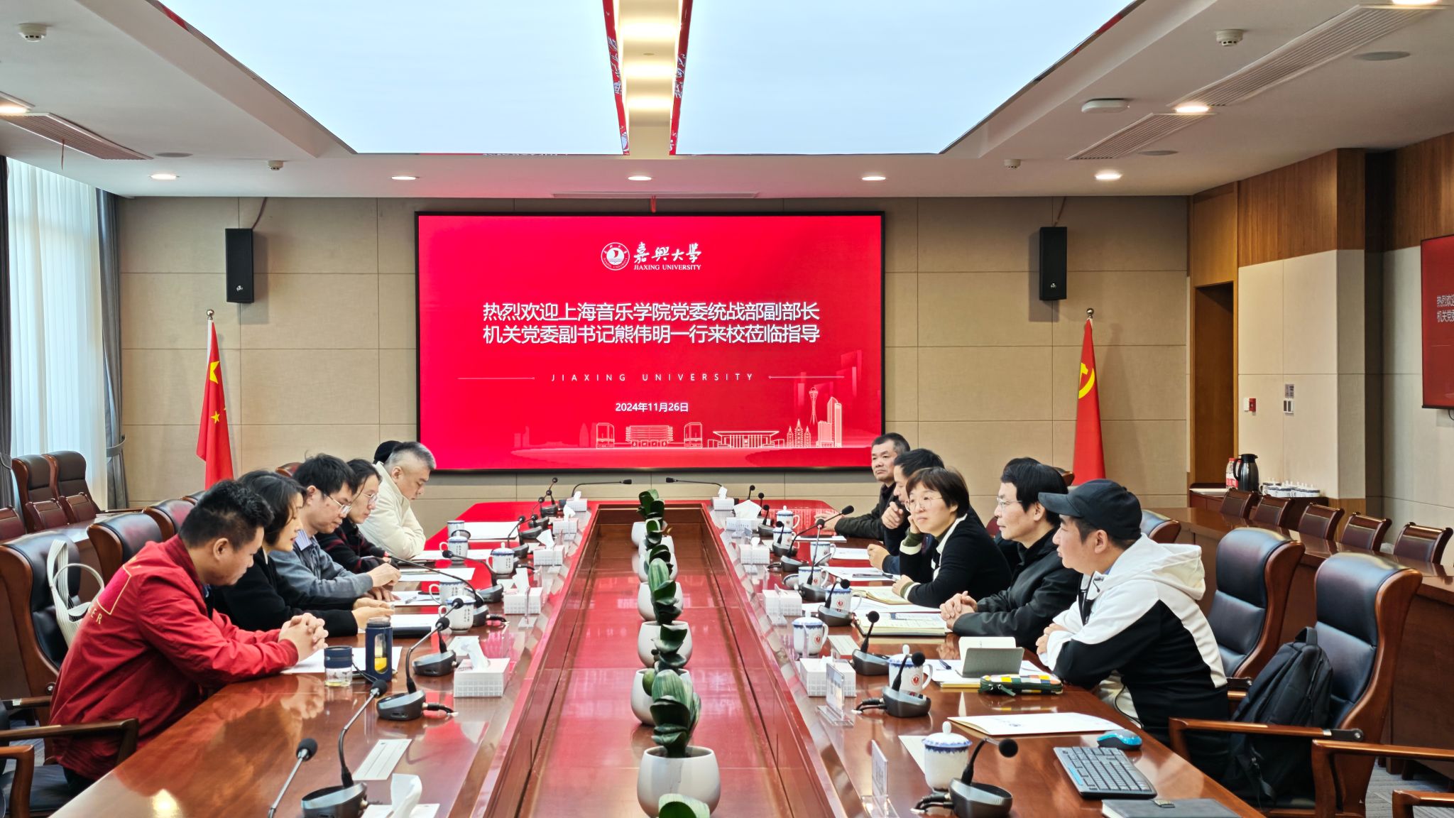 1126日,上海音乐学院统战部副部长熊伟明、民建上海音乐学院支部主委邱曙苇等一行6人来我校调研交流。学校党委组织部副部长、统战部副部长庄美燕,民建嘉兴市委会副主委韦浩出席会议。民建437ccm必赢国际官方网站支部主委、437ccm必赢国际官方网站教师王卫彬,437ccm必赢国际官方网站支部会员、437ccm必赢国际官方网站教师陈野、宋相鑫参加交流活动。