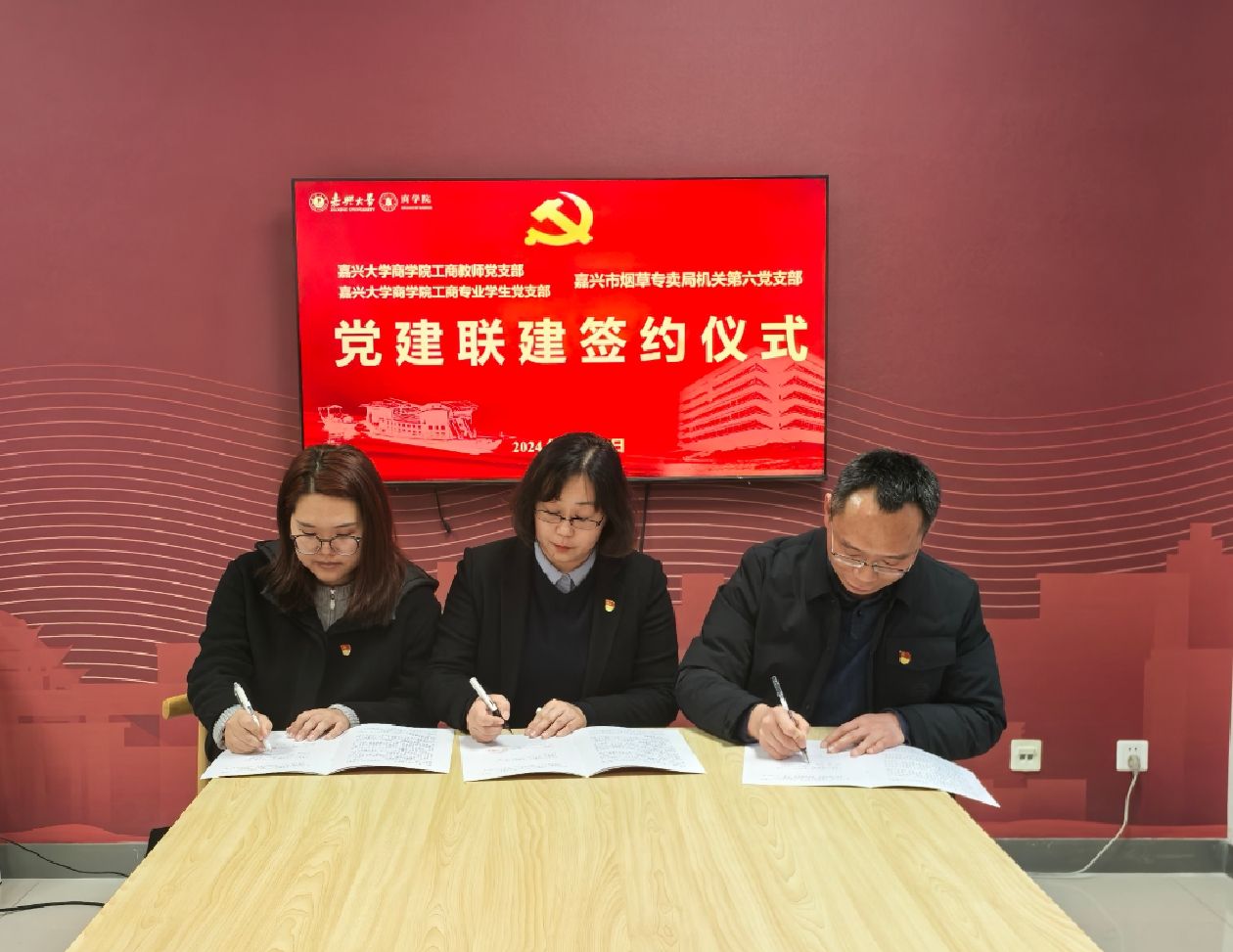 1210日,437ccm必赢国际官方网站工商专业教师党支部、工商专业学生党支部与嘉兴市烟草专卖局机关第六党支部在尚德楼355举行党建联建签约仪式。