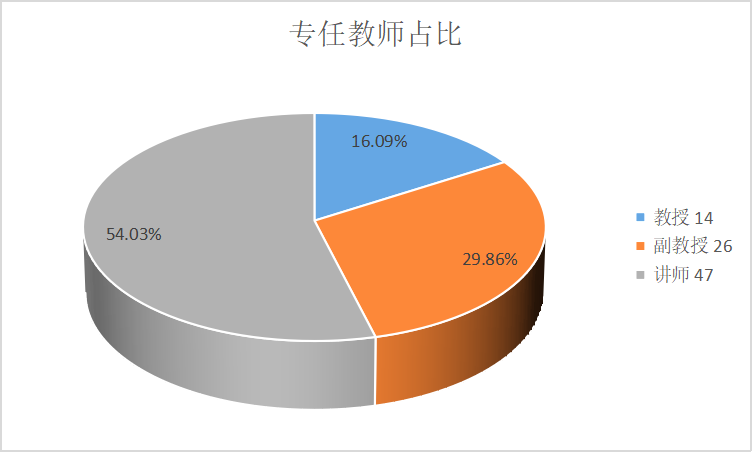 学院拥有一支爱岗敬业、素质优良、学缘结构相对合理,发展趋势良好的师资队伍。现有专任教师87人,其中正高职称14人,副高职称26人,博士63人。近年来,学院积极开展高学历、高职称人才引进的同时,推行师从名师、学历学位进修、出国进修等教师提升项目,国(境)外访学进修老师比例占专任教师的36.71%,双师型教师比例为70.89 %。